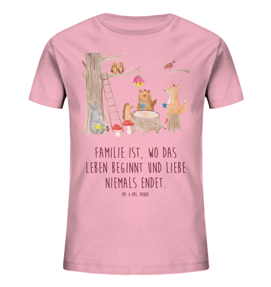 Organic Kids T-Shirt forest animals picnic - 12-14 years (152/164) - with a saying - Cotton Pink