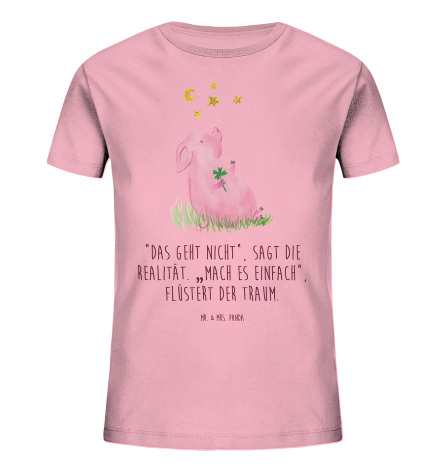 The Lucky Pig not only symbolizes luck but also dreams and aspirations - a lovely reminder for kids to dream big and chase their goals with determination. The slogan is heartwarming and encourages positivity: “Reality says: ‘That’s impossible!’ But my dreams tell me: ‘Just go for it!’” This can inspire a sense of motivation in young hearts, making the t-shirt an adorable choice for parents looking to encourage their children in a fun and stylish way.