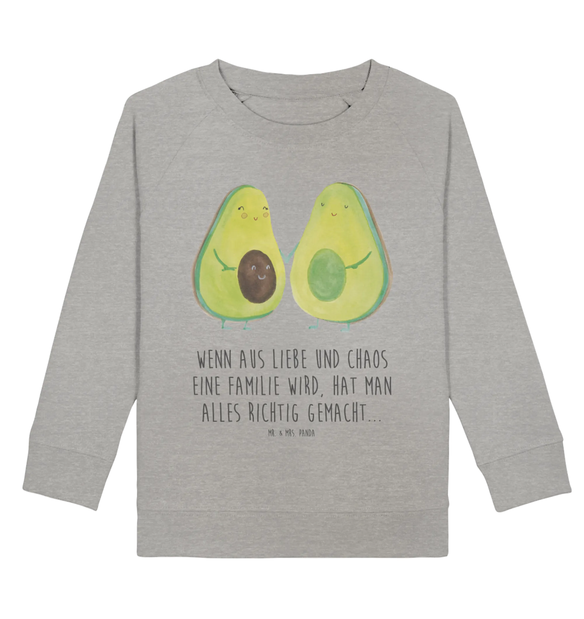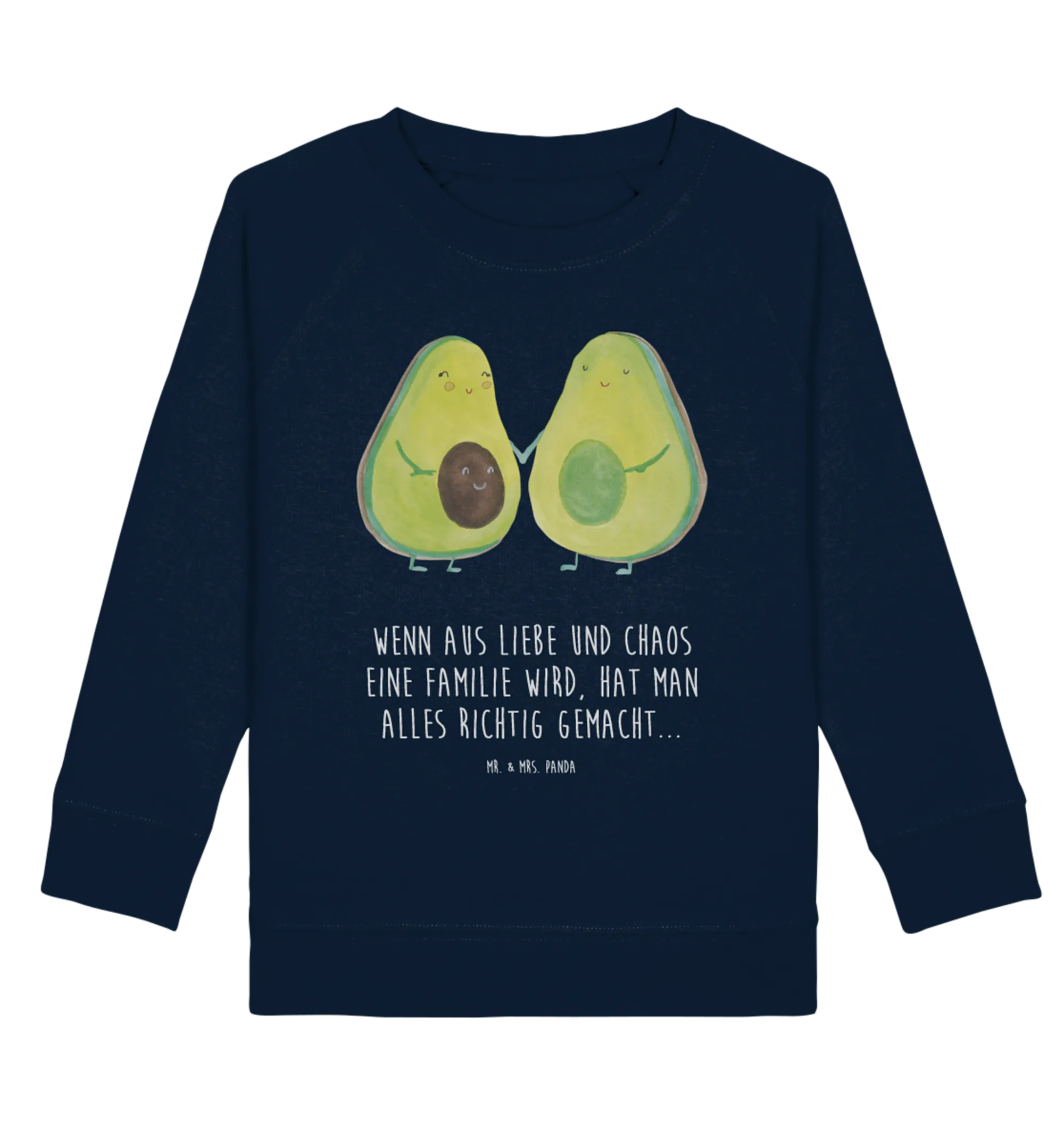 Die Avocado Kollektion von Mr. & Mrs. Panda zeigt auf liebevolle Weise, welche Wunder das Leben zu bieten hat. Mit originellen Designs, die von Hand gezeichnet wurden, wird jeder Pullover zu einem Unikat. Dieser Kinderpullover eignet sich hervorragend als Geschenk für verschiedene Anlässe: sei es zur Geburt, zur Babyparty oder zur Hochzeit. Mit dem Motto 'Wenn aus Liebe und Chaos eine Familie wird, hat man alles richtig gemacht...' wird er zu einem tollen Erinnerungsstück für die ganze Familie, das Freude bereitet.