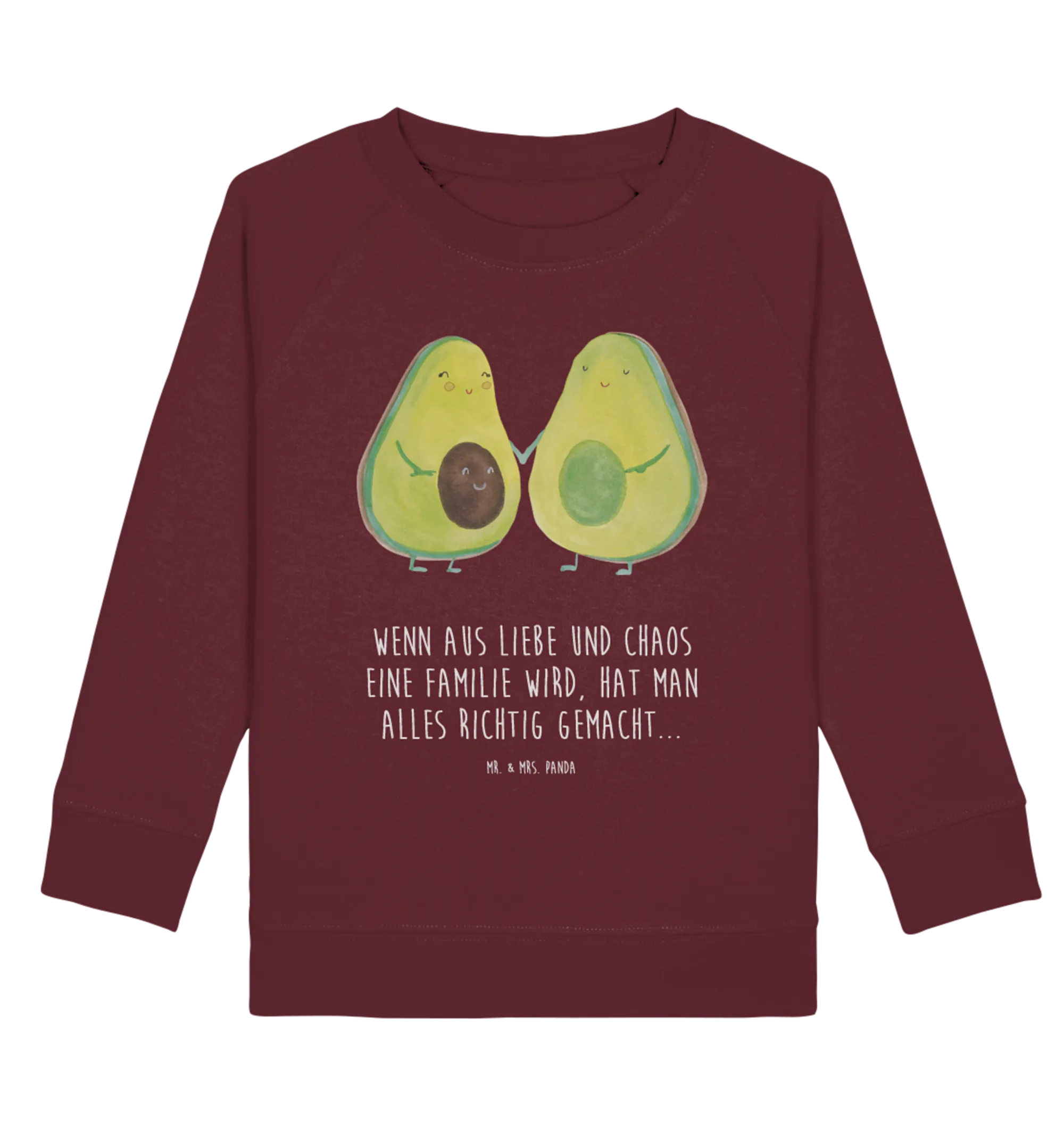 Die Avocado-Kollektion von Mr. & Mrs. Panda steht für Liebe, Familie und unbeschwerte Kindheit. Mit einem leichten burgunderroten Grundton bringt der Pullover Eleganz in den Kleiderschrank deiner Kinder. Die Kombination aus einem süßen Motiv und der hochwertigen Verarbeitung macht diesen Pullover zu einem ganz besonderen Geschenk.
