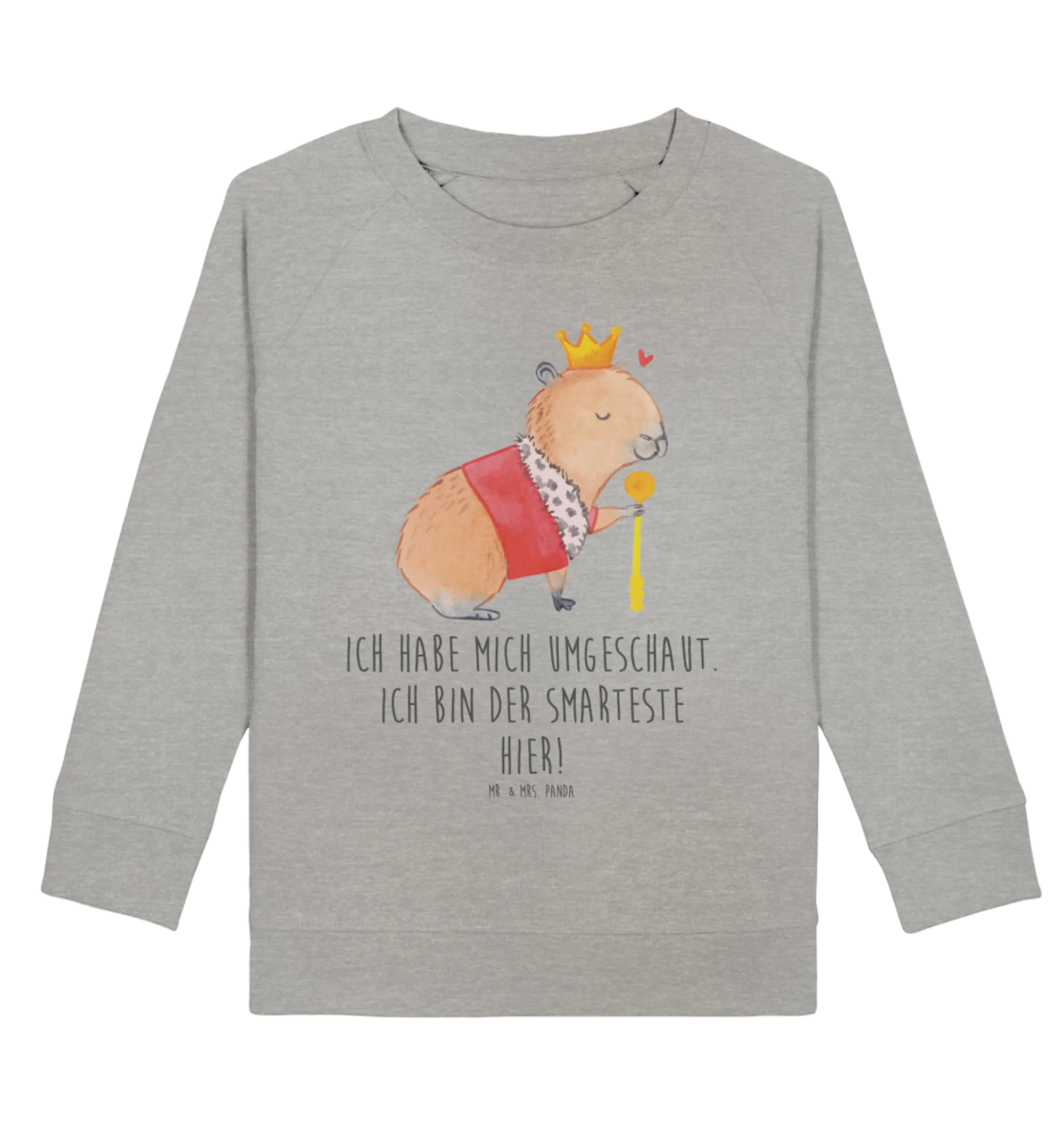 Unsere Organic Kinder Pullover mit diesem süßen und lustigen Capybara König Motiv sind perfekt für kleine Abenteurer im Alter von 12 bis 14 Jahren! Diese Pullover sind nicht nur bequem, sondern auch aus 100% Öko-Baumwolle gefertigt, was sie zur perfekten Wahl für umweltbewusste Eltern macht. Mit unserem Slogan 'Ich habe mich umgeschaut. Ich bin der Smarteste hier!' wird Dein kleiner Liebling zum König seiner Freunde.
