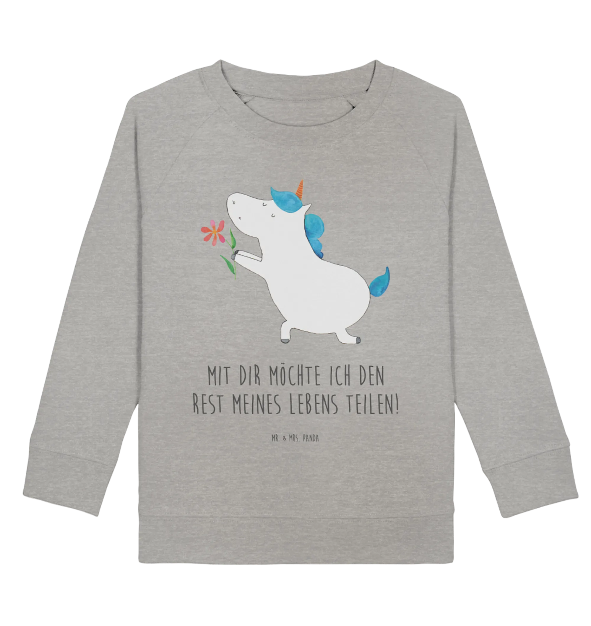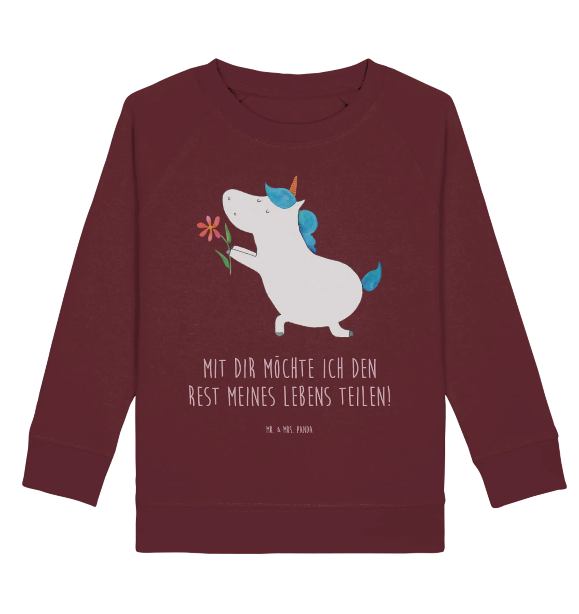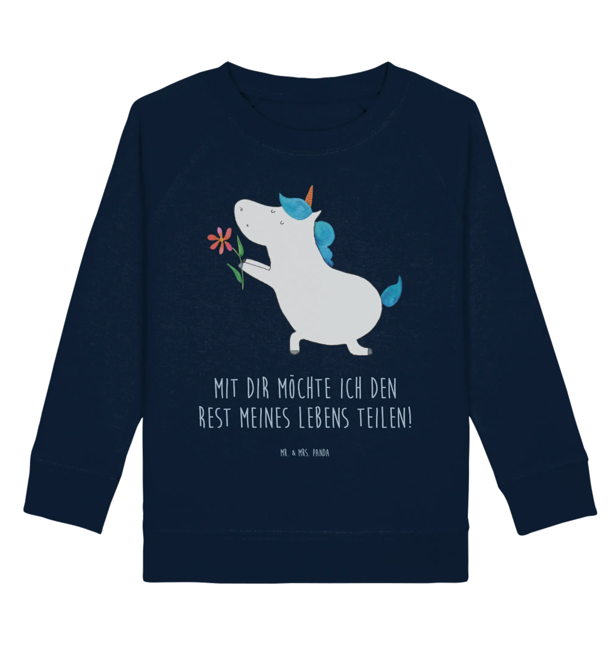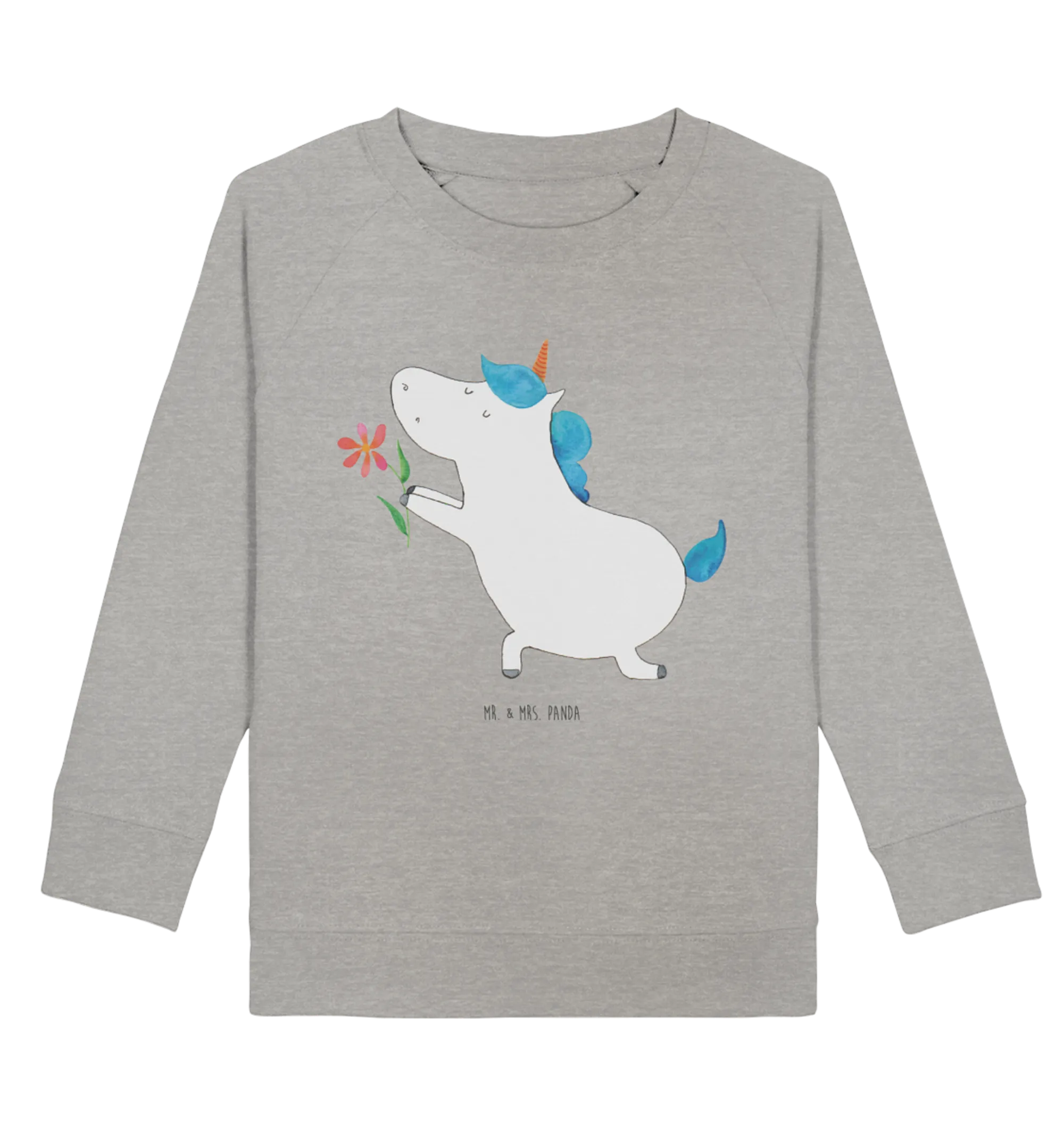 Mr. & Mrs. Panda Organic Kinder Pullover „Einhorn Blume“ – Ein zauberhaftes Kinder Sweatshirt aus der Einhorn - Kollektion, liebevoll handgezeichnet von Mrs. Panda in unserer Manufaktur im Norden Deutschlands.