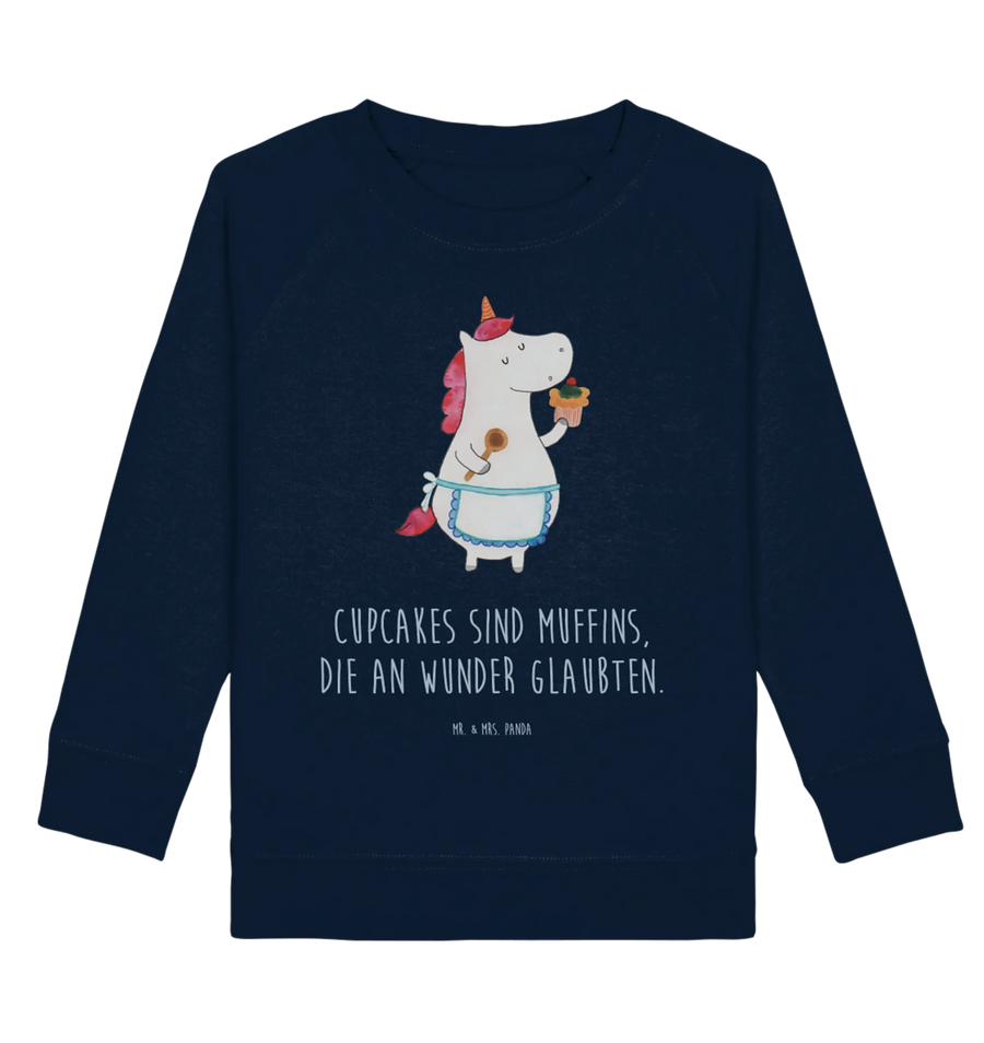 Der Organic Kinder Pullover Einhorn Küchenfee aus der zauberhaften Einhorn-Kollektion von Mr. & Mrs. Panda ist das perfekte Geschenk für kleine Träumer und Hobby-Bäcker! In einem wunderschönen French Navy Blau gefertigt, funkelt dieser Pullover im Herzen eines jeden Kindes. Mit seinem süßen Einhorn-Motiv, das fröhlich mit einer Kochmütze und einer Kochschürze ausgestattet ist, versprüht er ganz viel Freude und zaubert jedem ein Lächeln ins Gesicht.