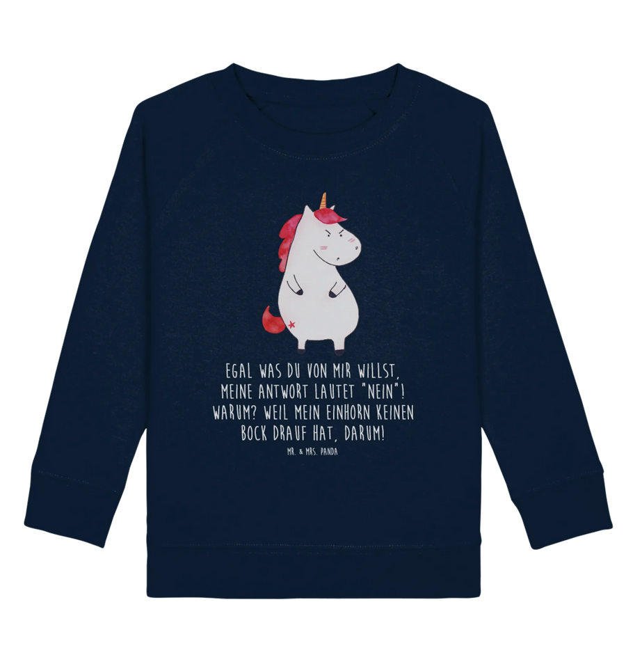 Organic Kinder Pullover Einhorn wütend - 12-14 Jahre (152/164) - mit Spruch - French Navy