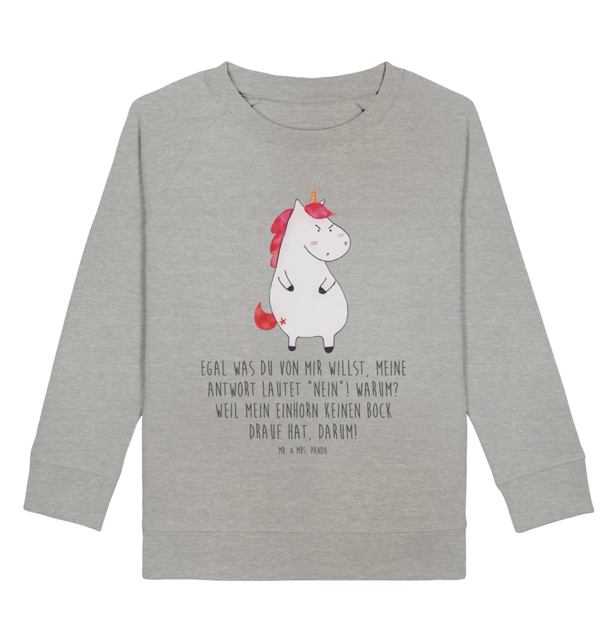 Der Organic Kinder Pullover „Einhorn wütend“ aus der Einhorn-Kollektion ist nicht nur süß, sondern auch umweltfreundlich und kindgerecht - und das macht ihn zum perfekten Geschenk für alle Anlässe.