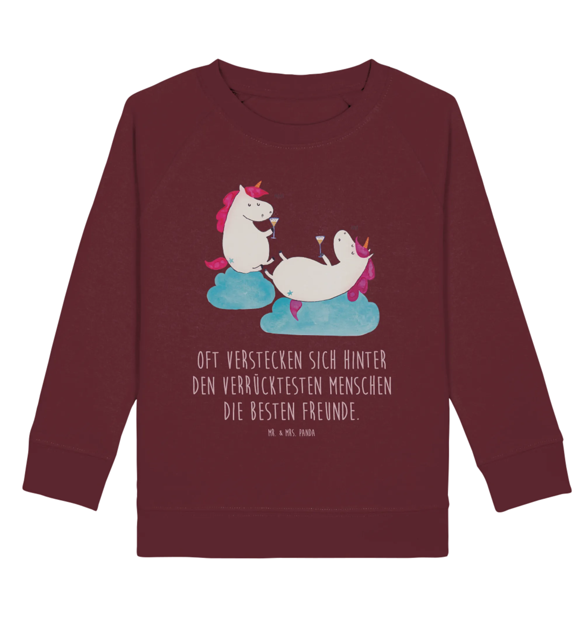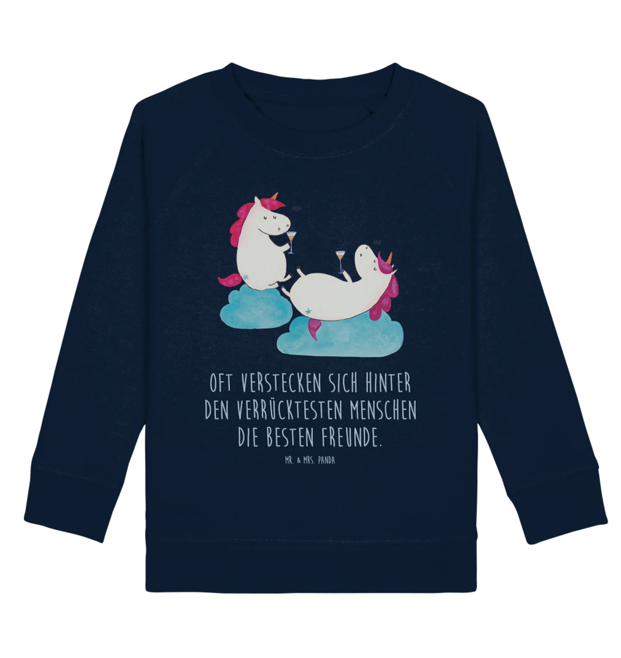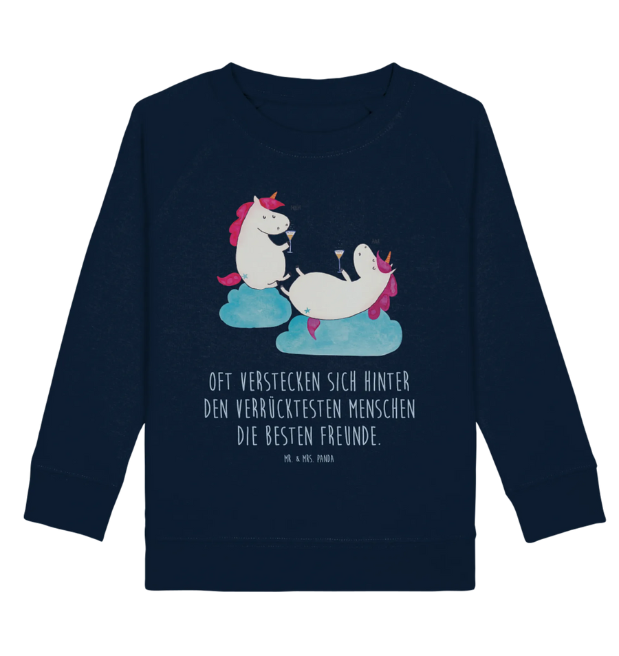 Entdecke den zauberhaften Organic Kinder Pullover mit dem einzigartigen Einhorn Sekt Motiv aus der Einhorn-Kollektion von Mr. & Mrs. Panda!