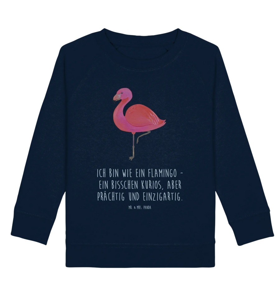 Mit dem Slogan "Ich bin wie ein Flamingo - ein bisschen kurios, aber prächtig und einzigartig" versprüht der Pullover Optimismus und Lebensfreude. Perfekt geeignet als Geschenk für den eigenen Sohn oder die eigene Tochter, für Geschwister oder Freunde und Freundinnen. 🎁