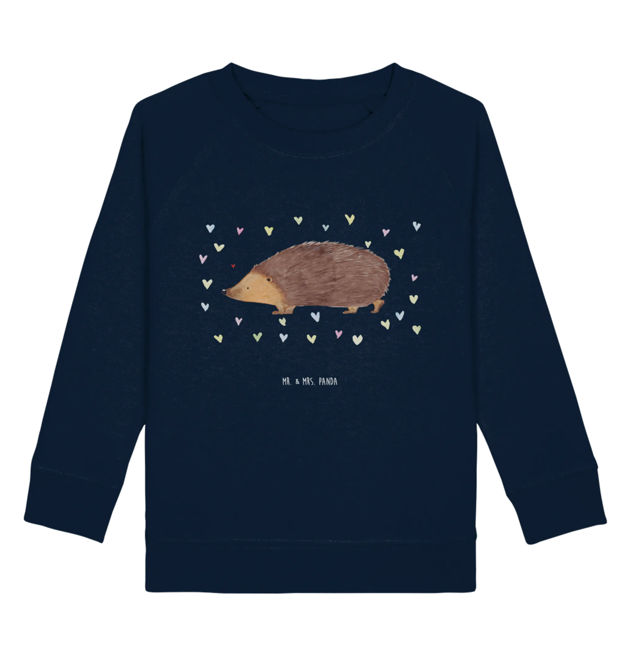 Entdecke den bezaubernden Organic Kinder Pullover mit dem liebevollen Motiv "Igel Herzen" aus der einzigartigen Small World Kollektion von Mr. & Mrs. Panda!