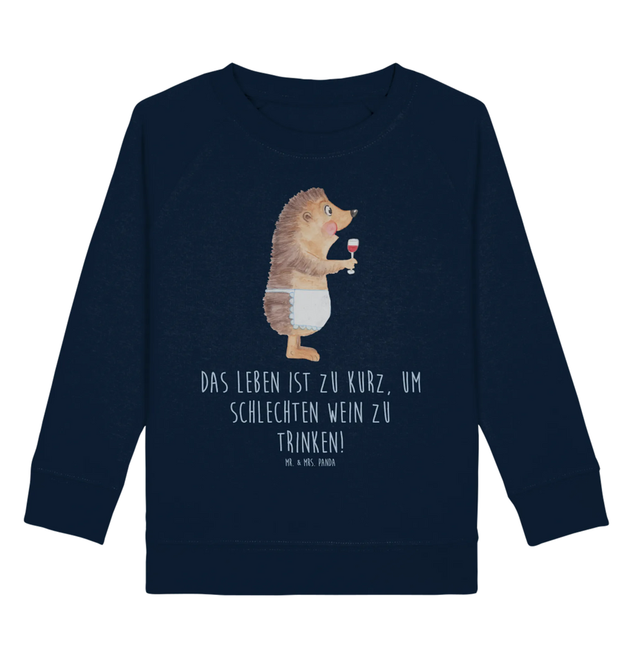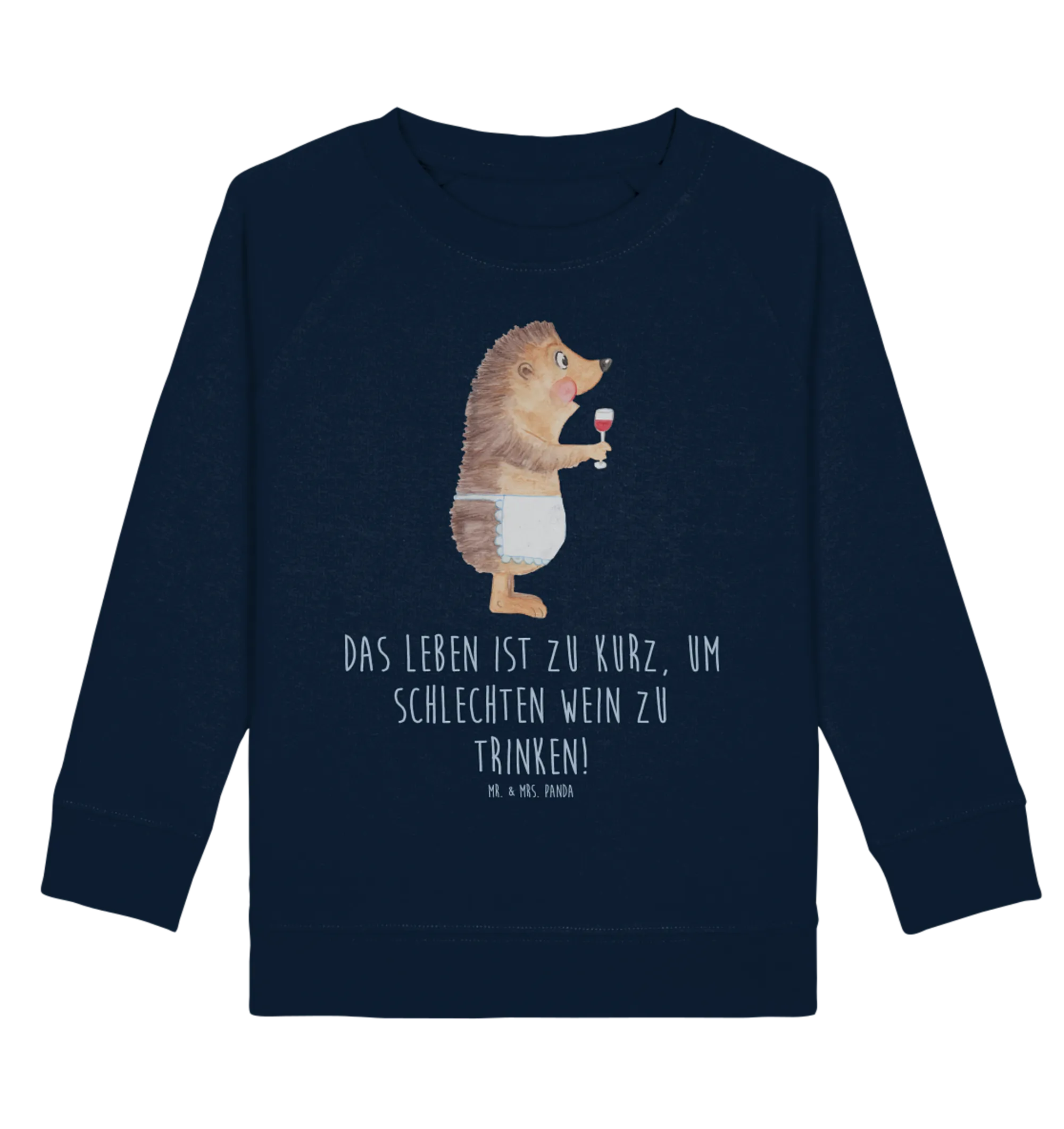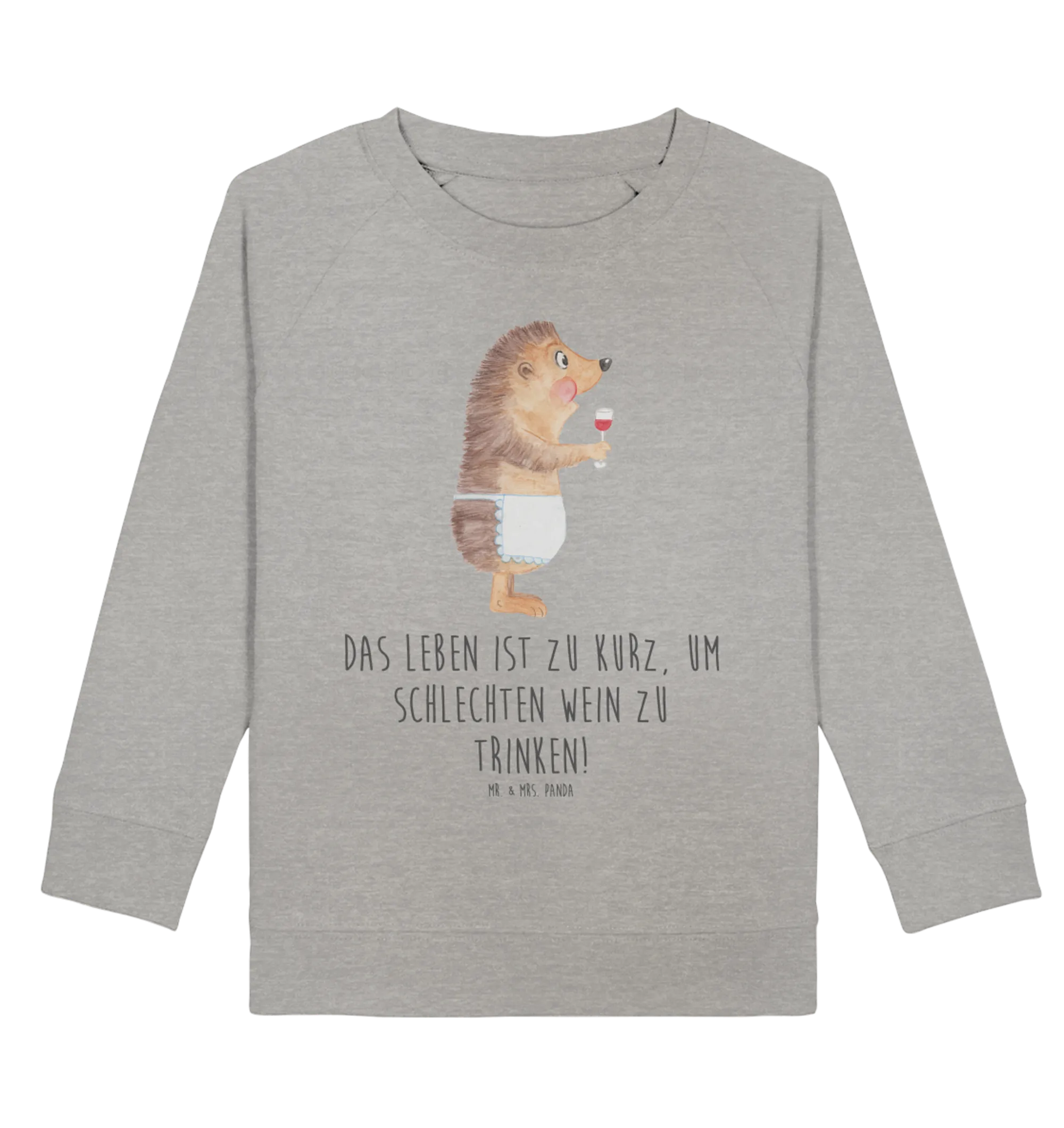 Entdecke den bezaubernden Organic Kinder Pullover mit dem einzigartigen Igel mit Wein Motiv aus der 'Small World' Kollektion von Mr. & Mrs. Panda! 🦔🍷