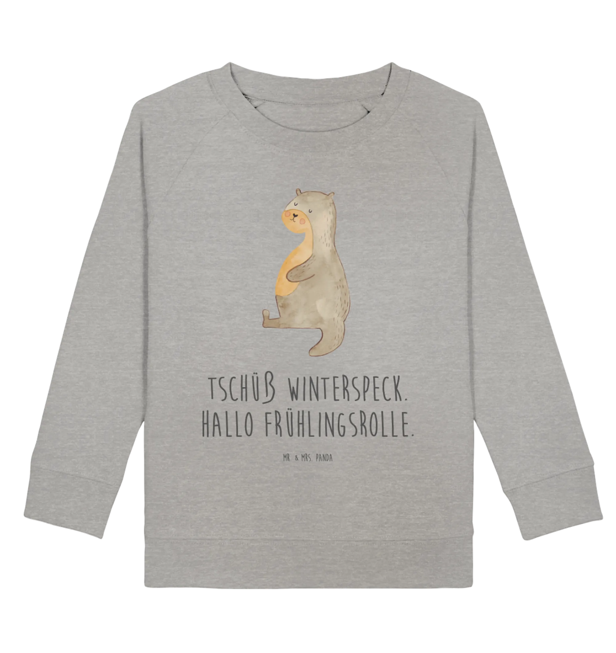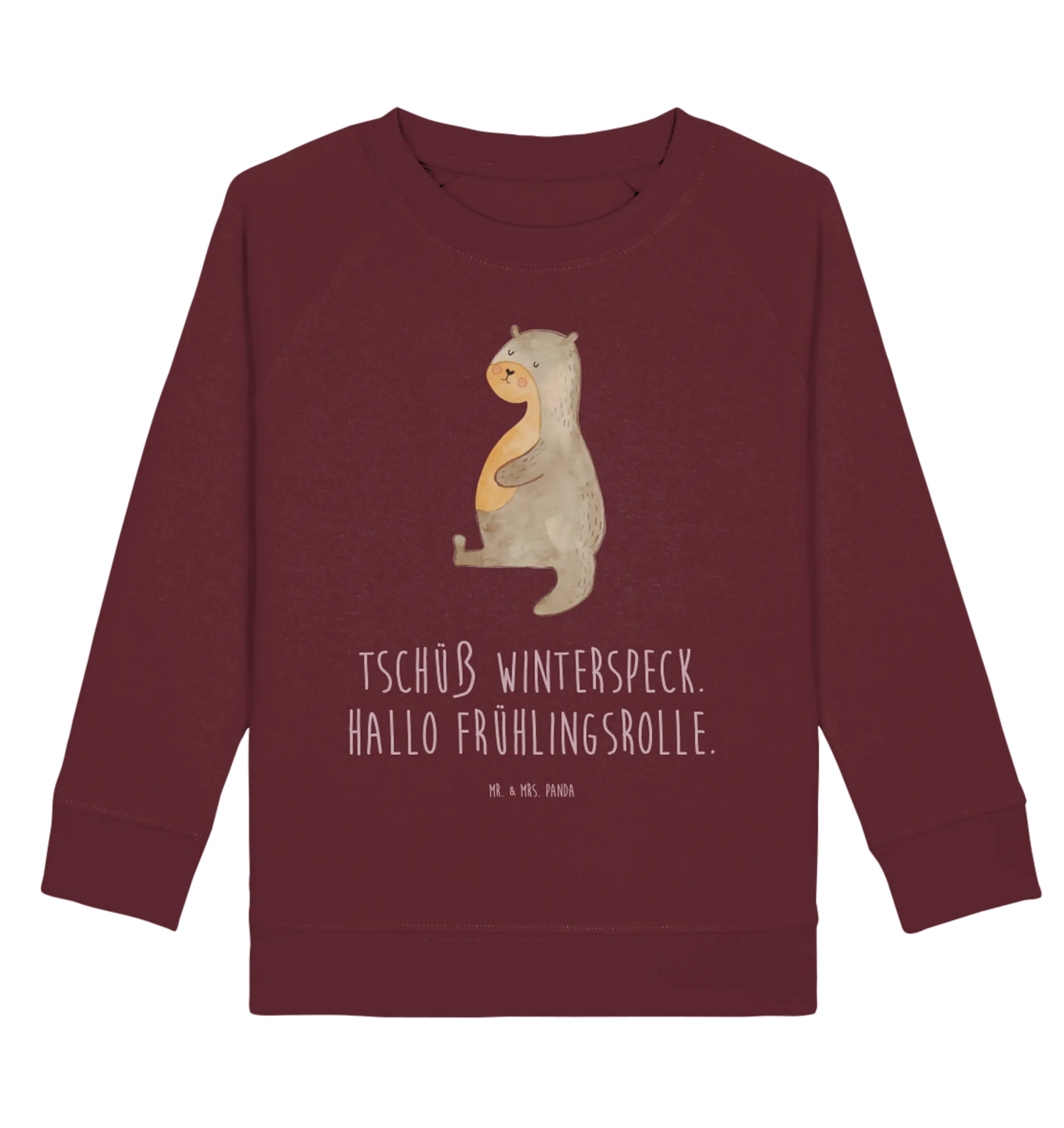 Mit seinem fröhlichen Design und dem dicken, lächelnden Otter, der Entspannung und Gemütlichkeit ausstrahlt, verbreitet dieser Pullover pure Freude. Besonders das Motto 'Tschüß Winterspeck. Hallo Frühlingsrolle.' sorgt für ein Lächeln auf den Lippen.