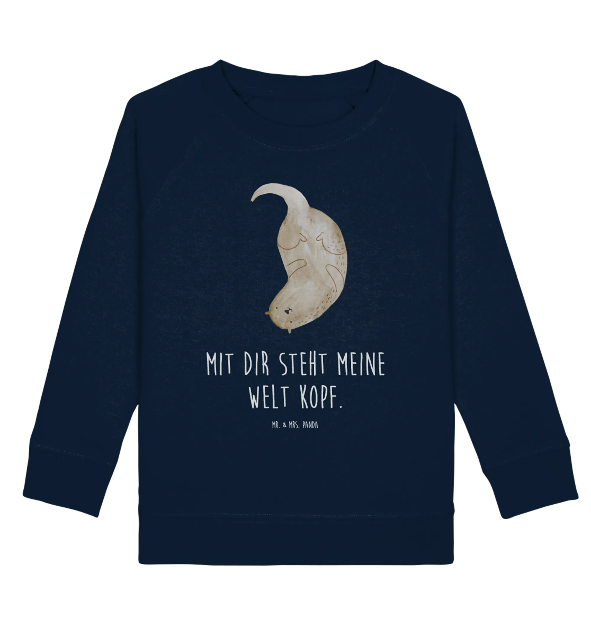 Der süße Organic Kinder Pullover mit dem niedlichen Motiv 'Otter kopfüber' von Mr. & Mrs. Panda bringt Freude in jeden Kinder-Alltag! Mit diesem freundlichen, fröhlichen Otter, der kopfüber im Wasser schwimmt, erkennt dein Kind, wie wichtig es ist, die kleinen Momente im Leben zu genießen.
