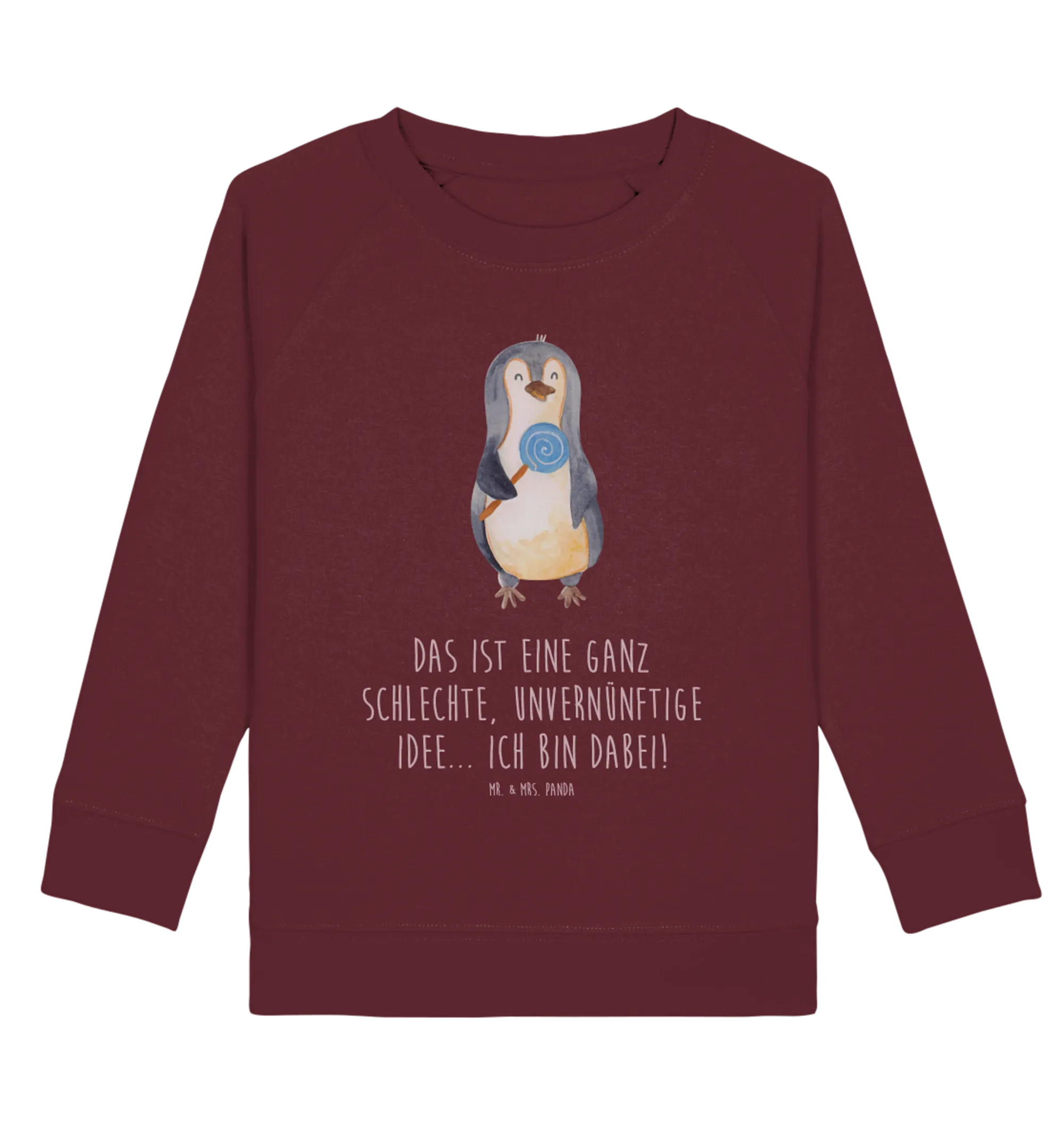 Du suchst das perfekte Geschenk für kleine Abenteurer und Naschkatzen? Dann ist der Organic Kinder Pullover mit dem süßen Pinguin Lolli aus der Pinguin-Kollektion von Mr. & Mrs. Panda genau das Richtige!