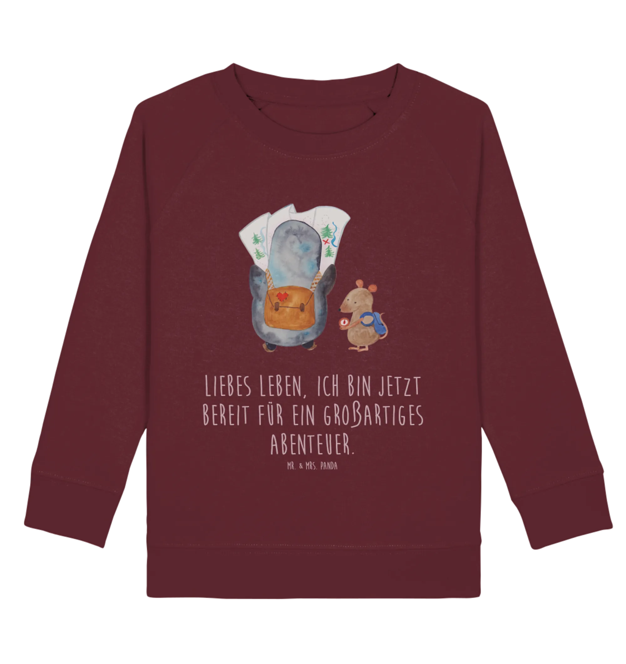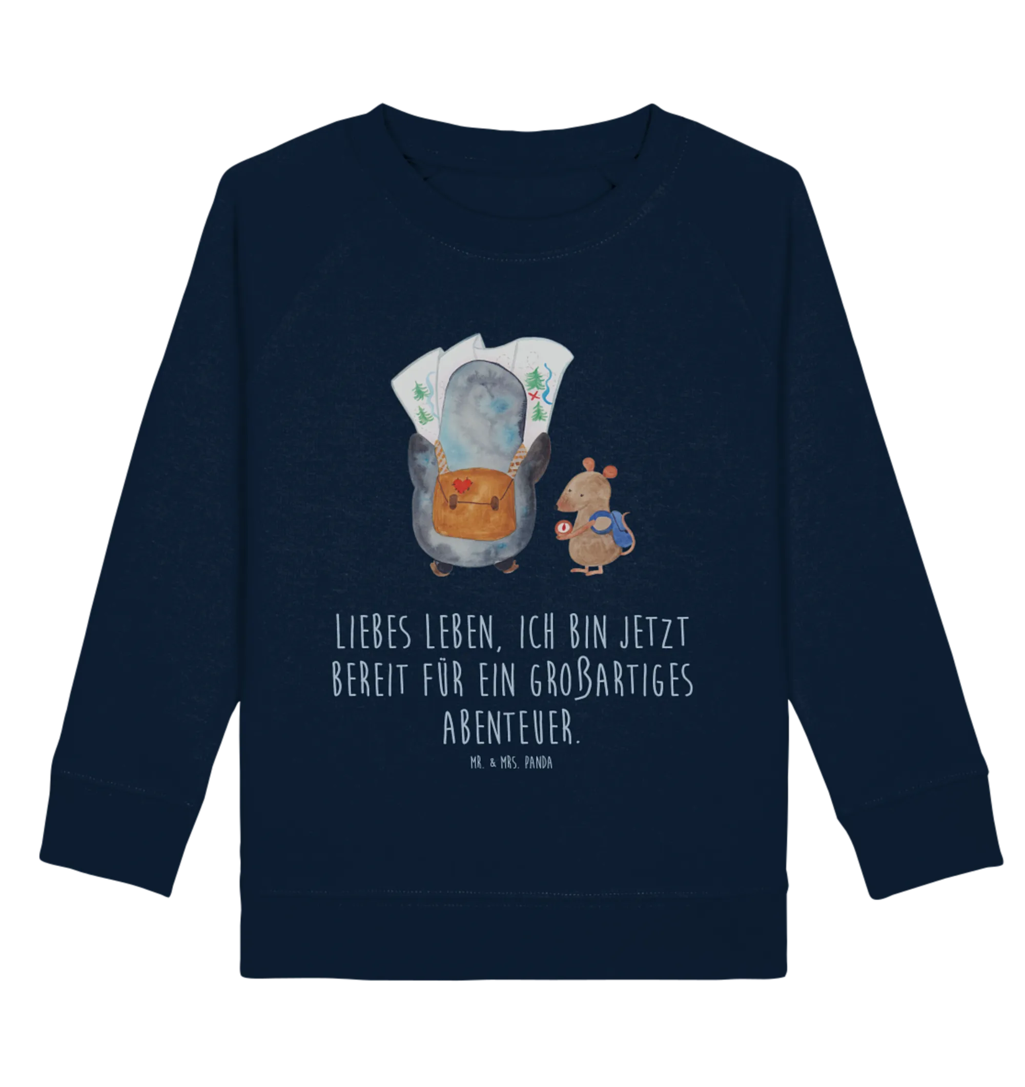Dieser Pullover ist nicht nur super bequem, sondern auch voller Fantasie und Abenteuerlust. Der süße Pinguin, der neugierig in eine Landkarte schaut, und die schlaue Maus, die den Kompass im Blick hat, laden dazu ein, die Welt zu erkunden. Das handgezeichnete Design von Mr. & Mrs. Panda bringt nicht nur Kinderaugen zum Leuchten, sondern ist auch eine wundervolle Erinnerung an aufregende Ausflüge und Roadtrips.