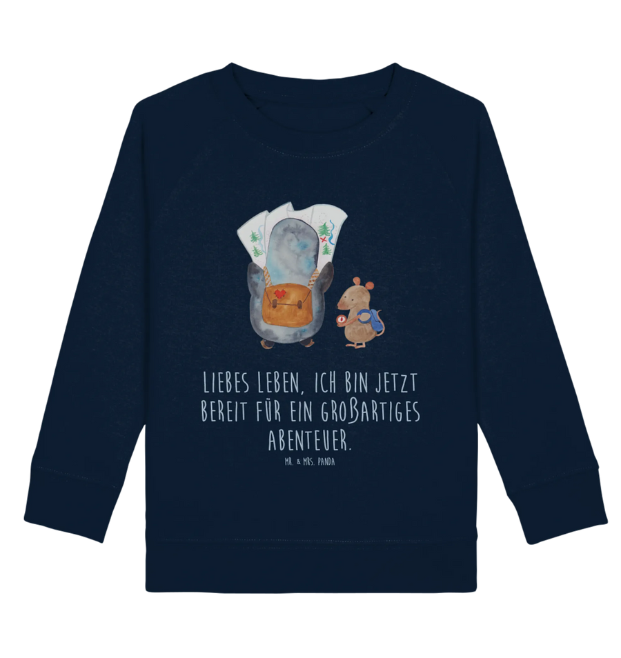 Entdecke den perfekten Kinder Pullover für kleine Abenteurer mit unserem zauberhaften Pinguin & Maus Wanderer Motiv aus der exklusiven Pinguin - Kollektion von Mr. & Mrs. Panda! 🐧✨