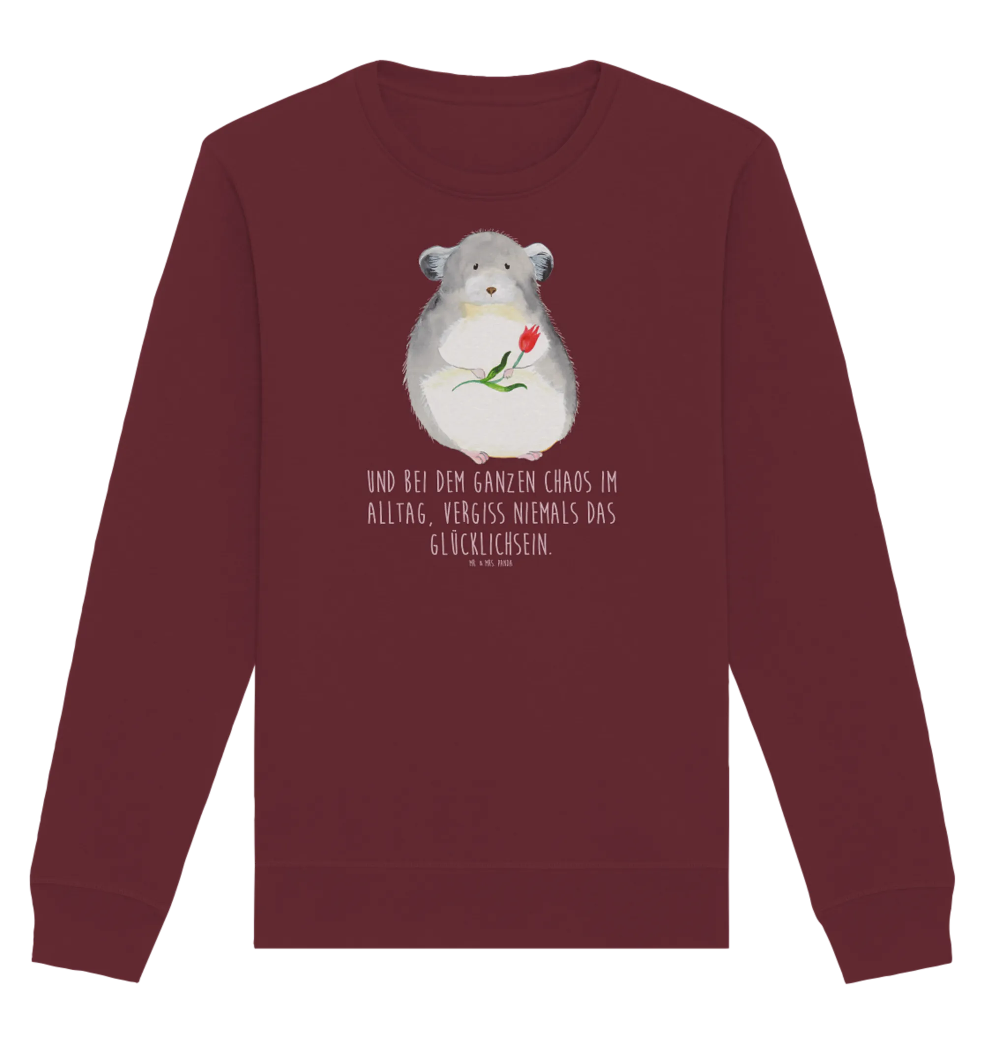 Organic Pullover chinchilla flower - Size XXL - with a saying - Burgundy
