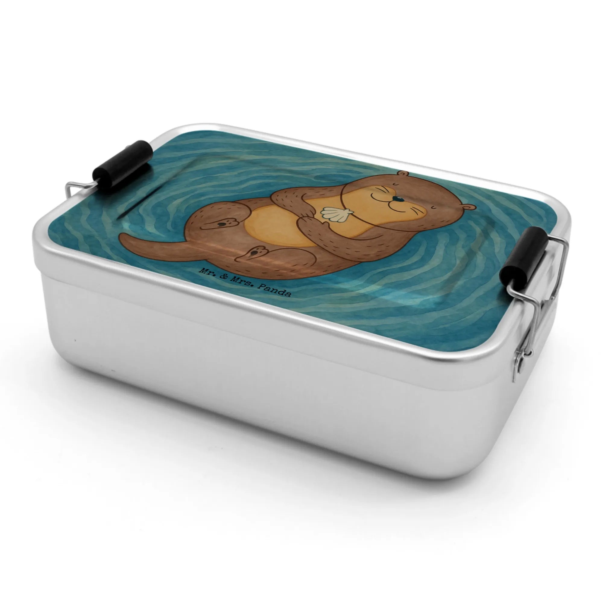 Hol dir die maritime Leichtigkeit in die Pause: Unsere Metall Brotdose mit dem süßen Otter-Motiv zeigt einen entzückenden Otter mit Muschelmedaillon – handgezeichnet von Mrs. Panda. Dieses liebevolle Motiv ist perfekt für alle, die Otter, das Meer und fröhliche Designs lieben.