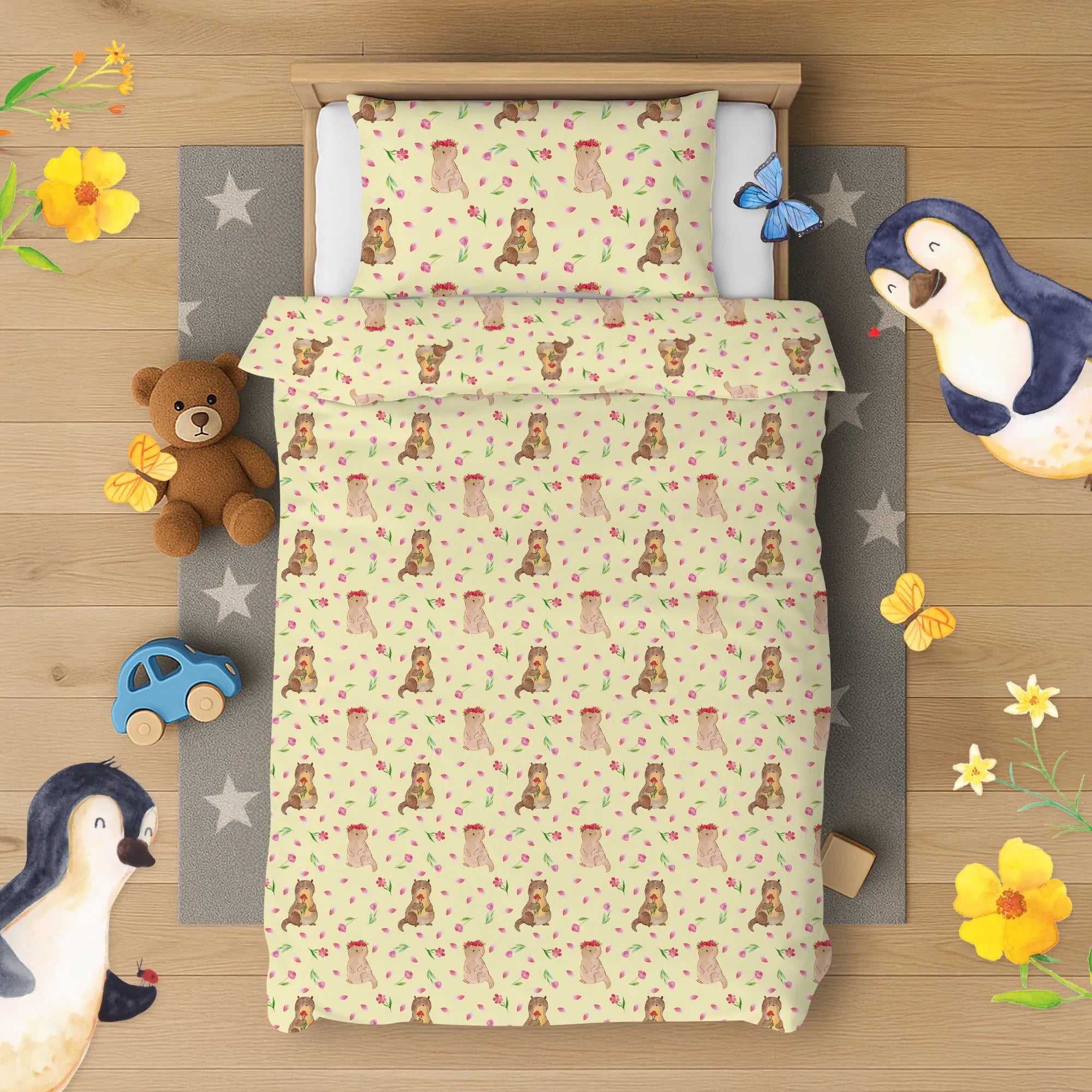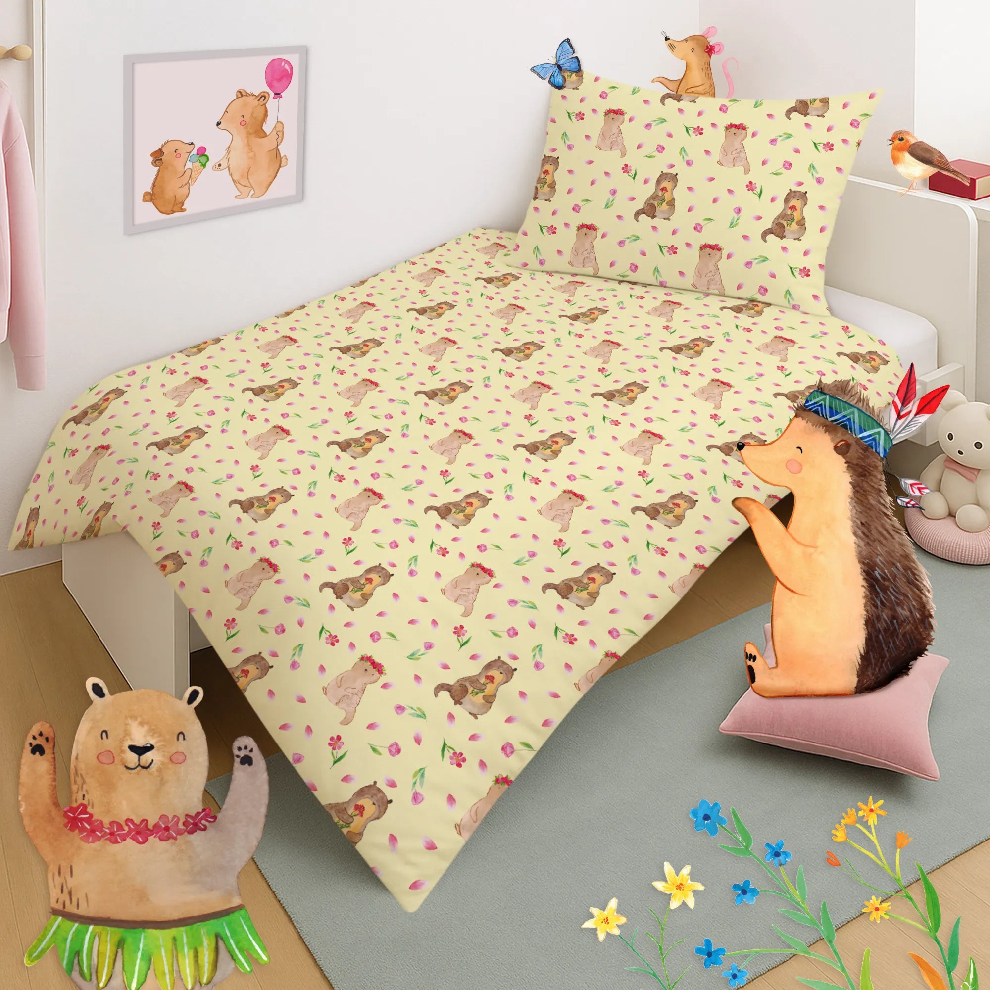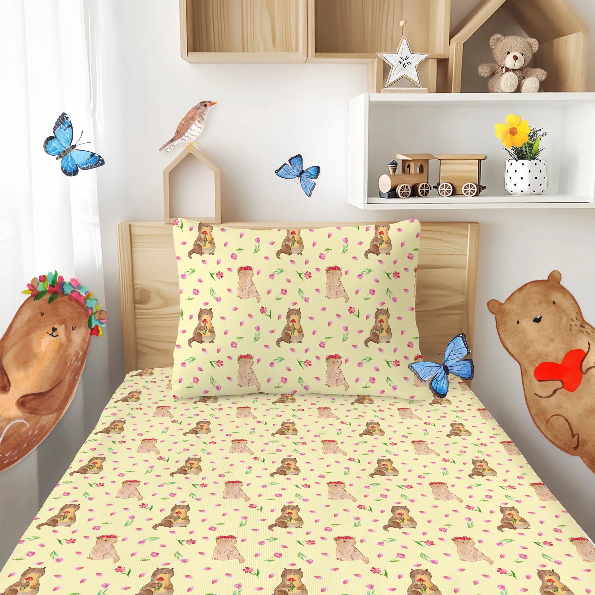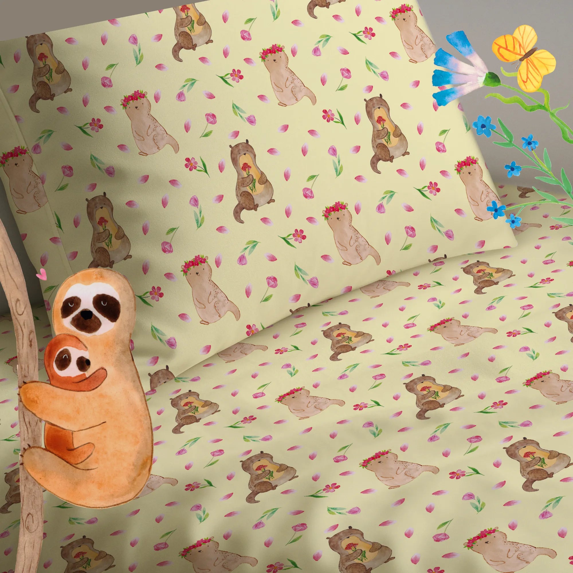 Whimsical Otter with Flowers - A Joyful Addition to Any Space
