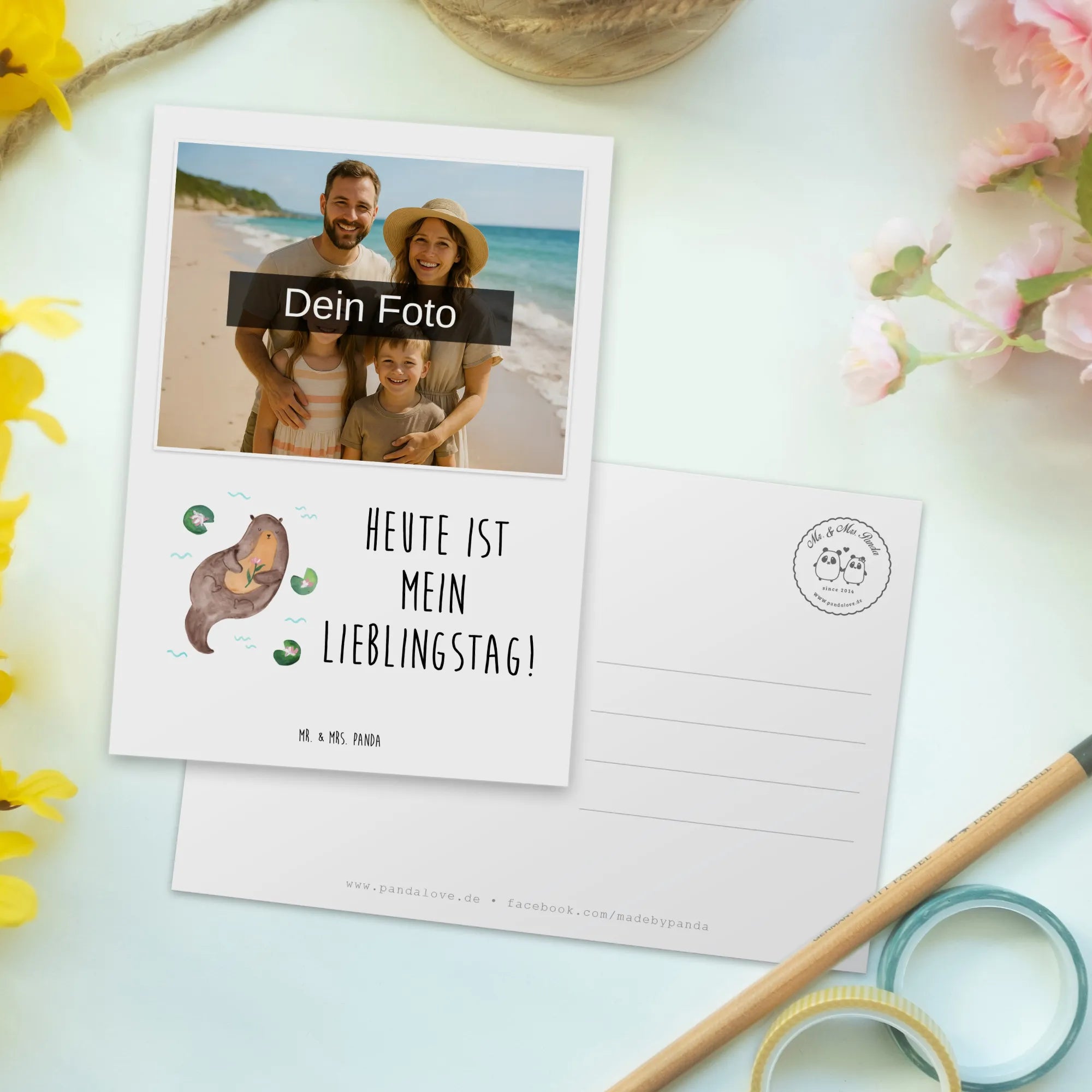 Personalized Photo Postcard otter Water Lily – Mr. & Mrs. Panda