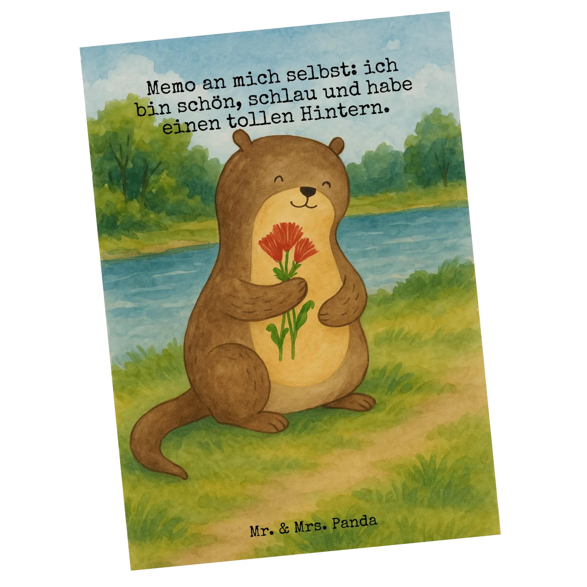 Postcard otter Bunch of flowers Design - with a saying