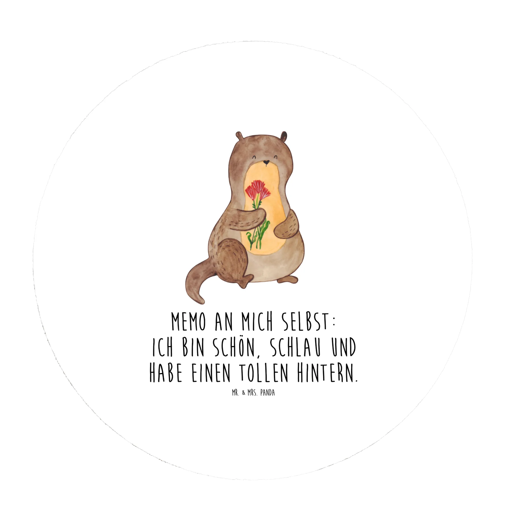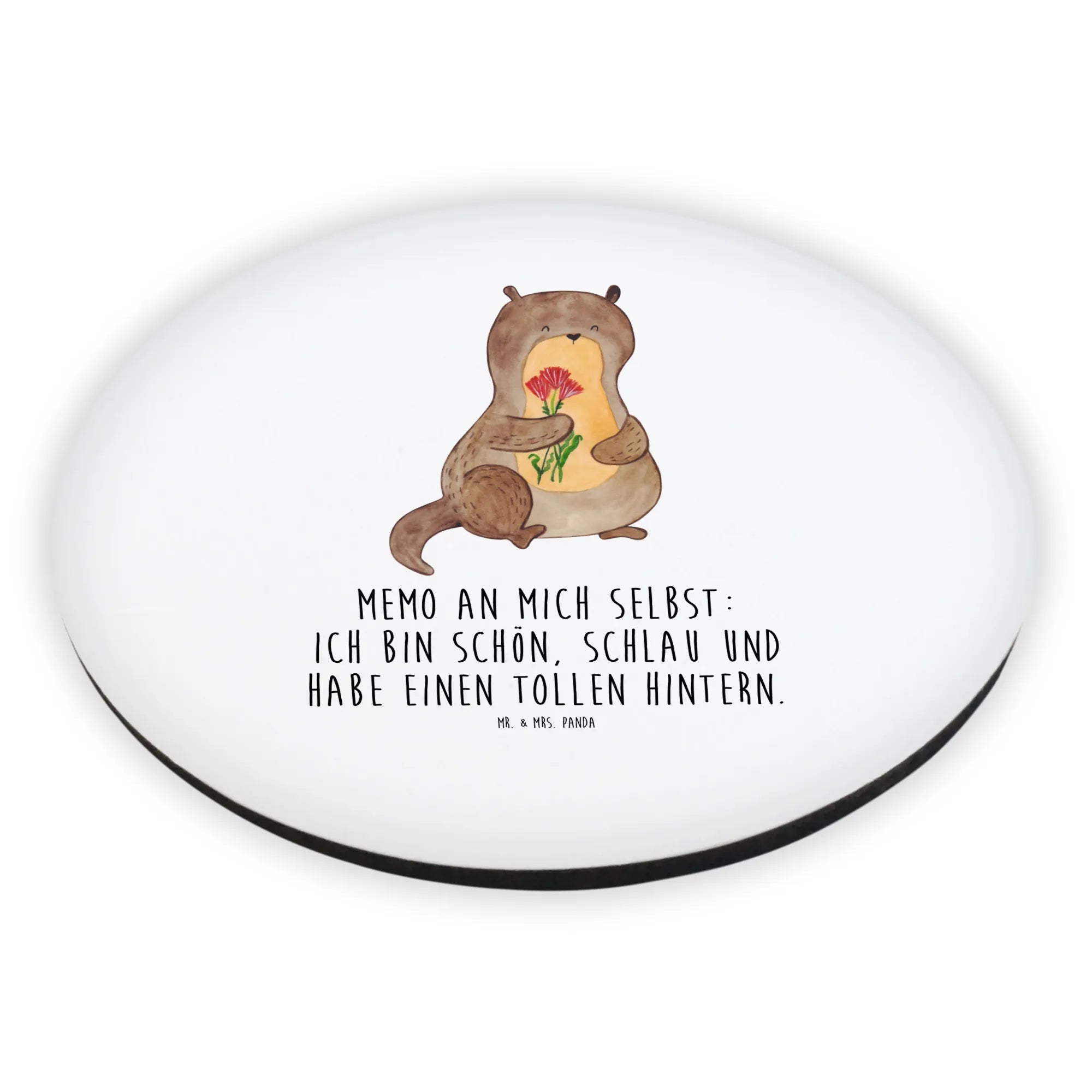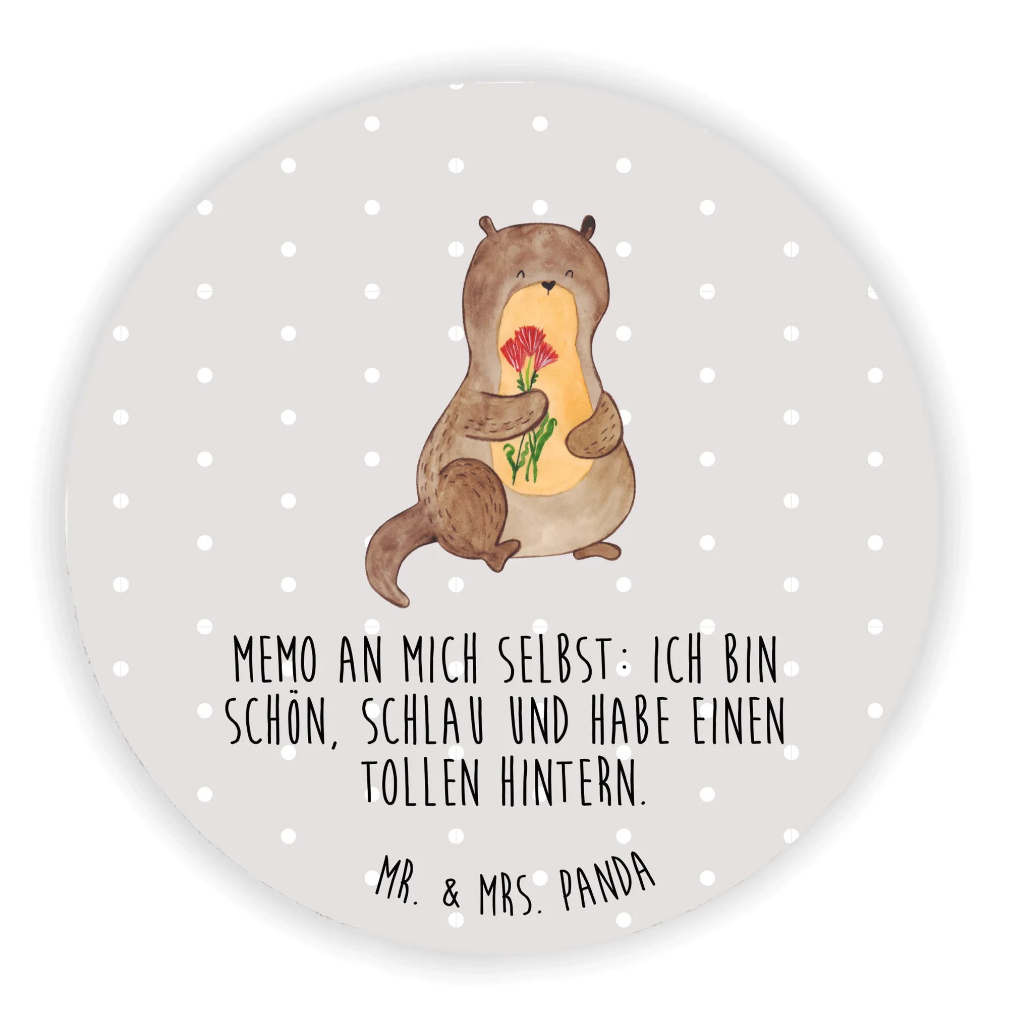 Round magnet otter Bunch of flowers - with a saying - Grey Pastel