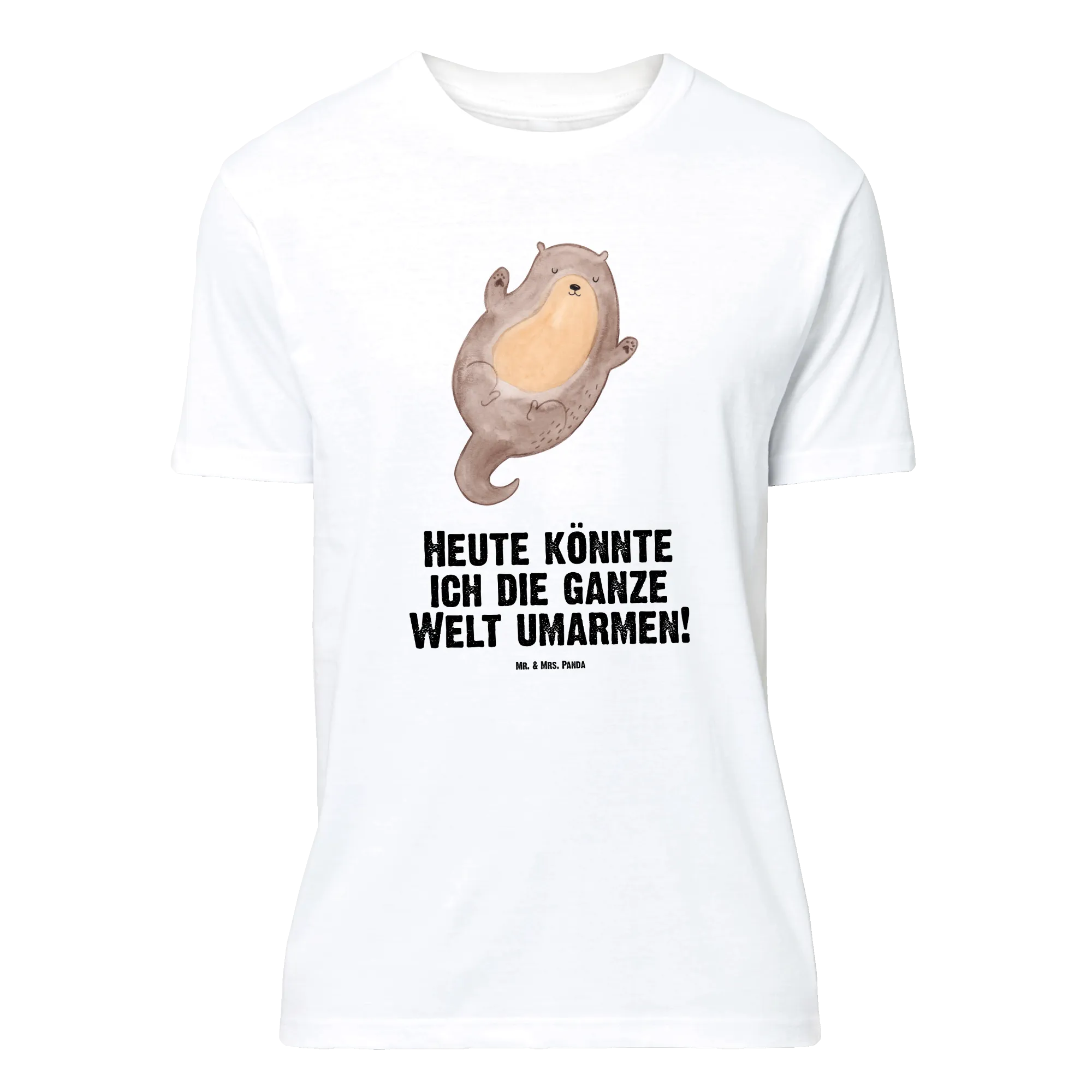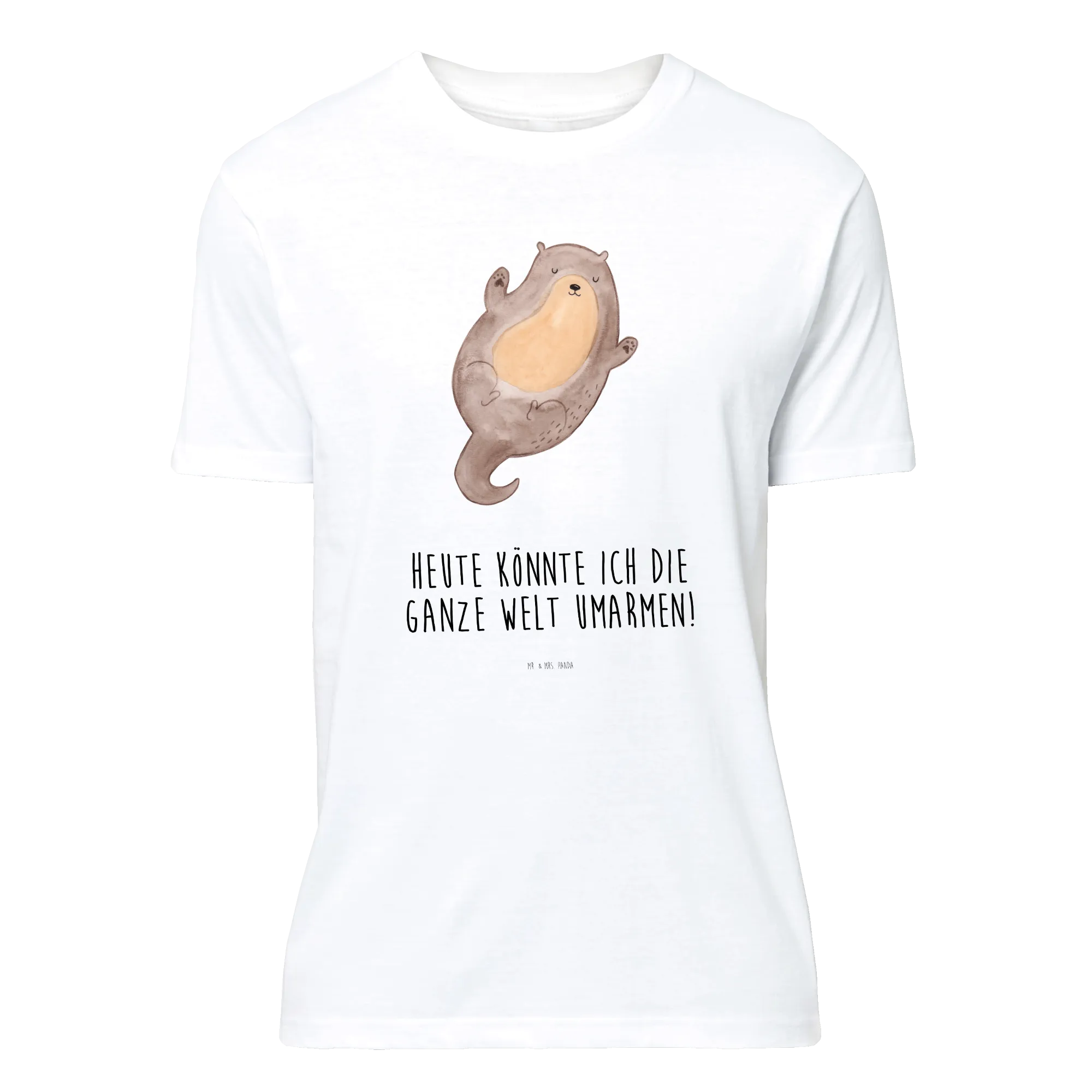 Dieses liebevoll gestaltete T-Shirt zeigt einen niedlichen Seeotter, der auf dem Rücken schwimmt und seine Arme weit ausbreitet, als wolle er die ganze Welt umarmen. Das Motiv aus der Otter - Kollektion wurde von Mrs. Panda mit viel Herz handgezeichnet und bringt sofort gute Laune in deinen Kleiderschrank.