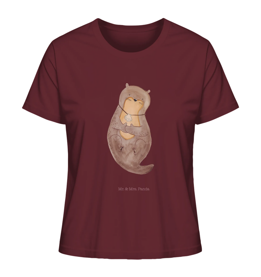 Otter-Liebe zum Anziehen: Hol dir ein Stück Meer in deinen Kleiderschrank mit dem Mr. & Mrs. Panda Shirt Damen "Otter mit Muschelmedaillon" aus der liebevollen Otter - Kollektion. Der süße Otter mit Muschelanhänger ist ein echter Blickfang und zaubert sofort ein Lächeln auf dein Gesicht. 🦦