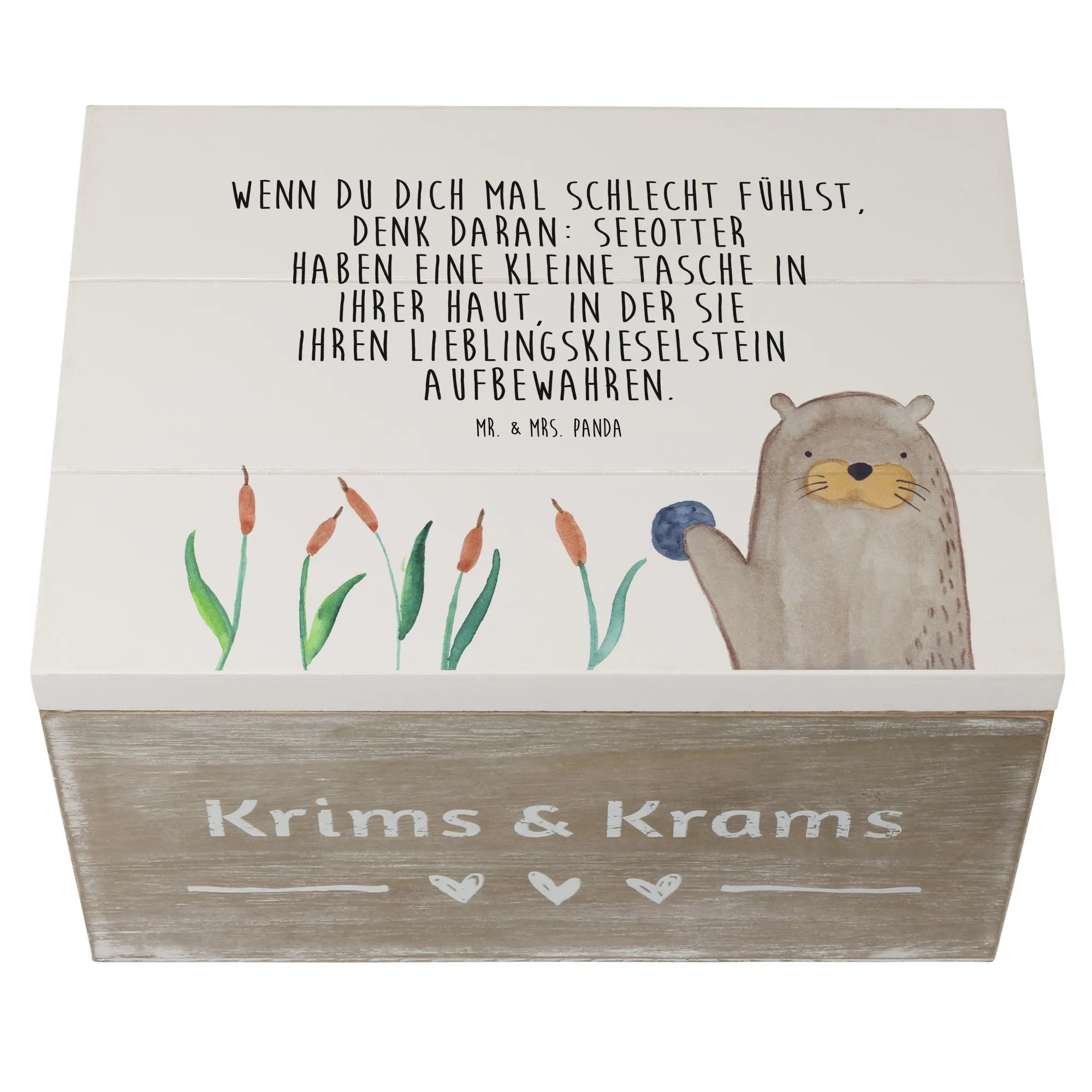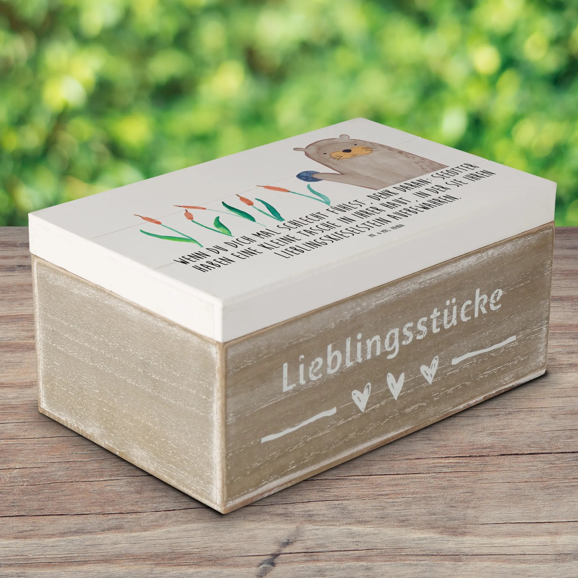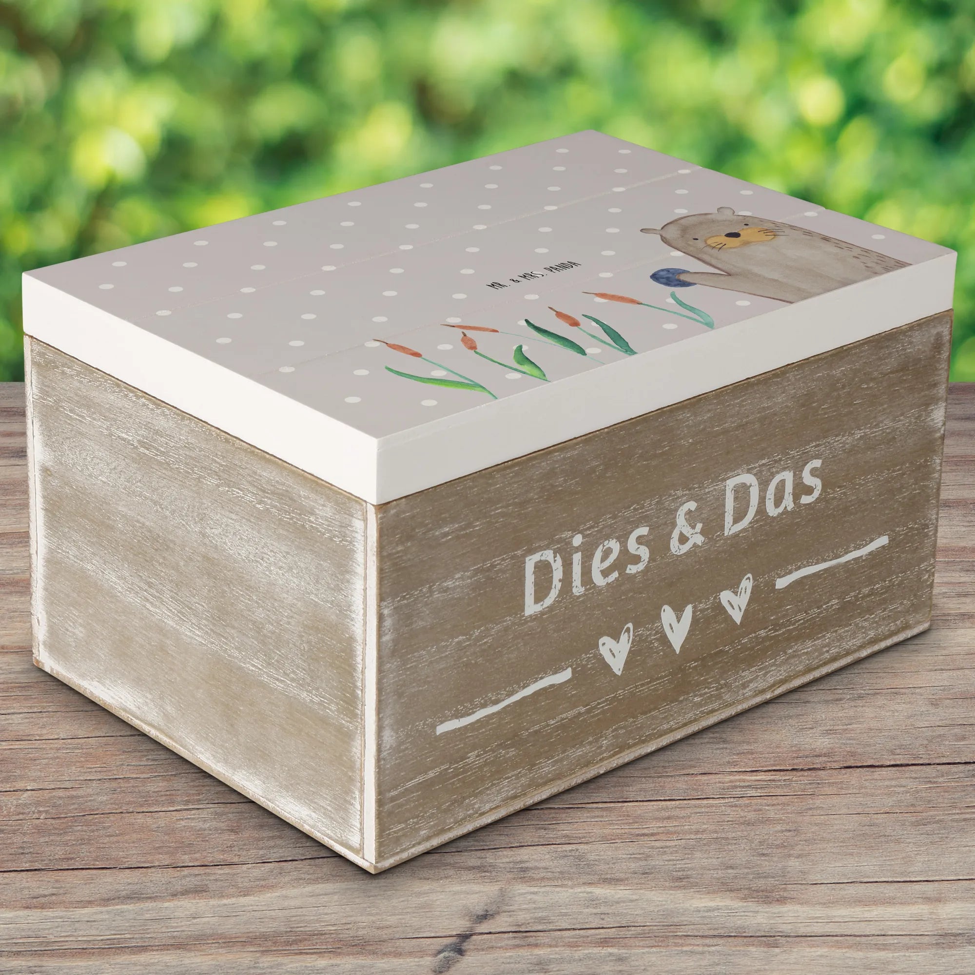 Wooden chest otter Stone - 22 x 15 cm - with saying - Pastel Gray