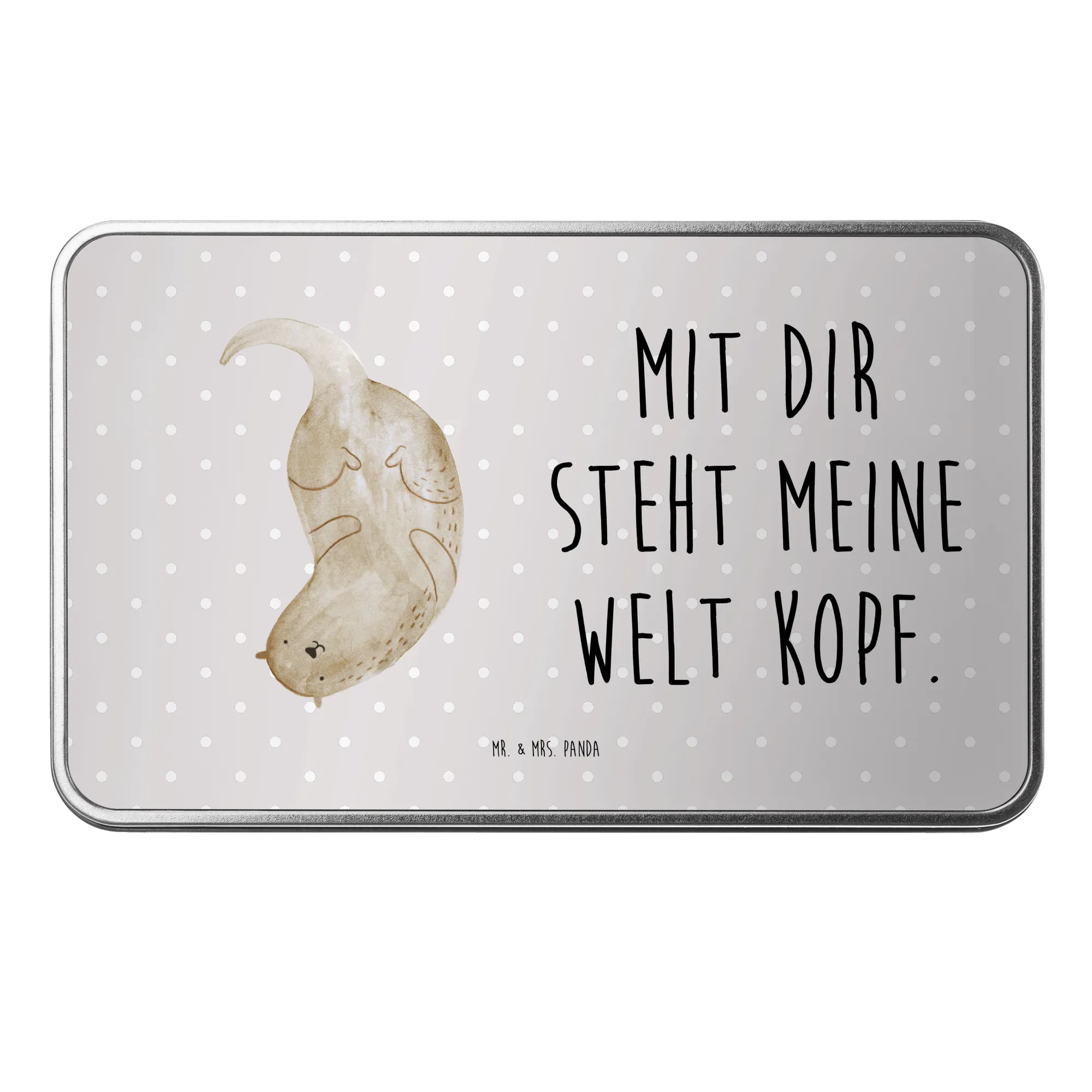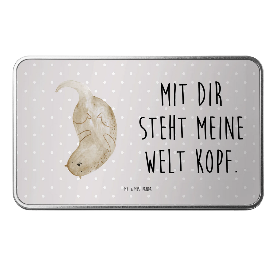 If you're looking for a charming and unique gift that will bring a smile to the face of any animal lover, our beautiful metal tin featuring a delightful upside-down otter is just the ticket! This wonderful tin box from the Mr. & Mrs. Panda Otter Collection is designed with love and care, making it the perfect storage solution for all sorts of keepsakes.
