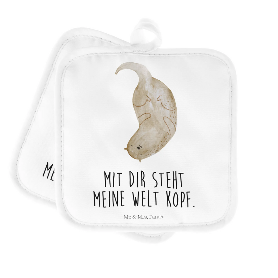 Pot holder otter upside down - with saying - White