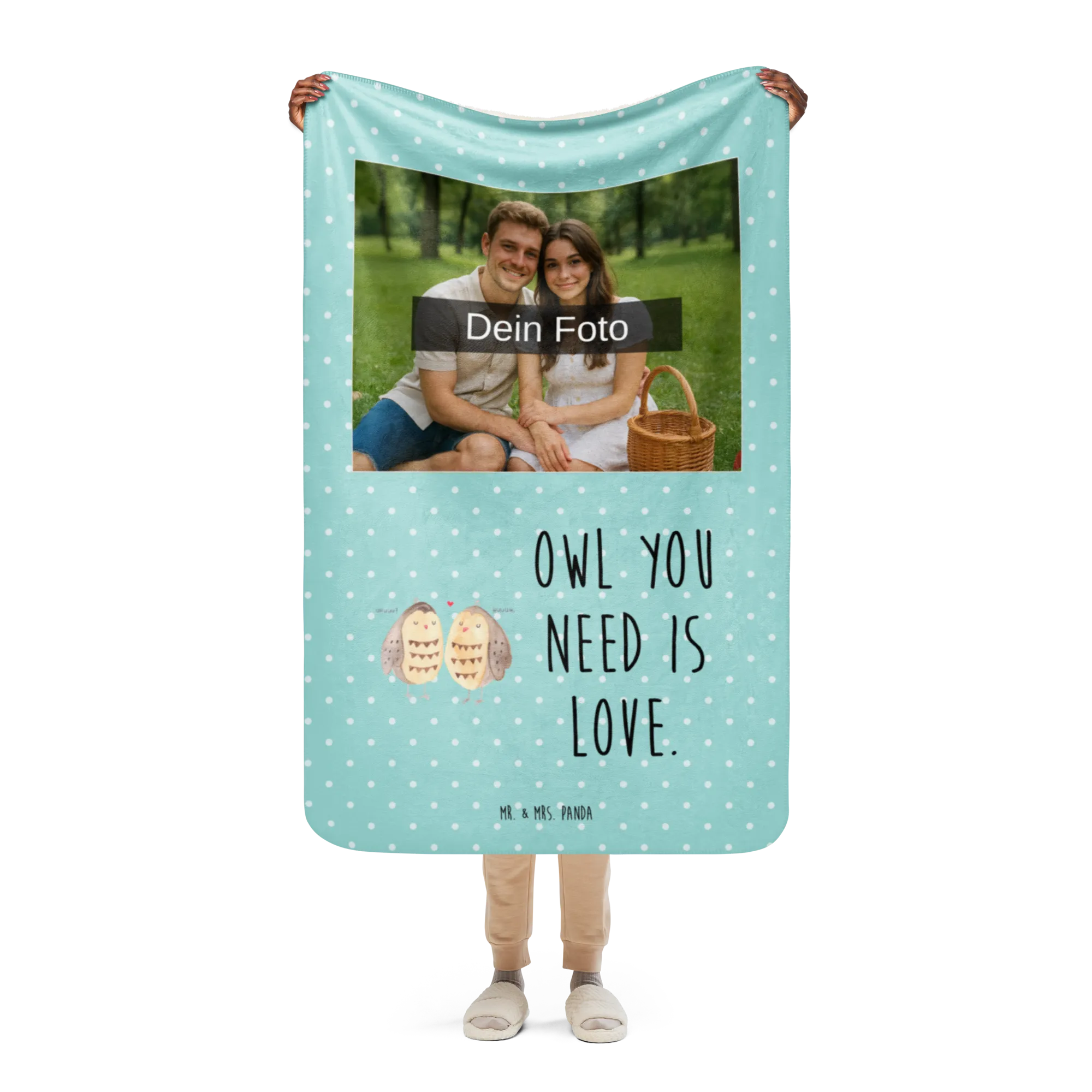 Sherpa Photo Cuddle Blanket owls Love - 130 x 155 cm