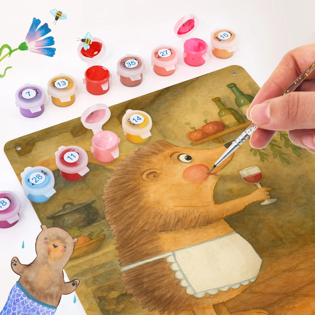 Bring a splash of creativity to your walls with the Paint by Numbers Metal Sign from Mr. & Mrs. Panda! This unique DIY project measures 200 mm (8 inches) by 300 mm (12 inches) and showcases charming vintage designs reminiscent of a classic bar scene. Crafted from a sturdy metal plate, it features pre-printed numbered areas that allow you to express your artistic flair with bright, water-based acrylic paints. You’ll find three premium brushes with beautifully painted handles to make your painting experience smooth and enjoyable. It’s the perfect way to bring your personal touch to any home bar or kitchen. With this sign, you can unwind and indulge in a relaxing painting session while creating a beautiful piece of art. Each kit is carefully checked and contains all you need: a numbered metal plate, vibrant acrylic paints, brushes, and an easy instruction manual. Hang it using the included hemp rope or screws (not included) for a charming display. Shipped in a sturdy package, this sign makes for a thoughtful gift for any art enthusiast!