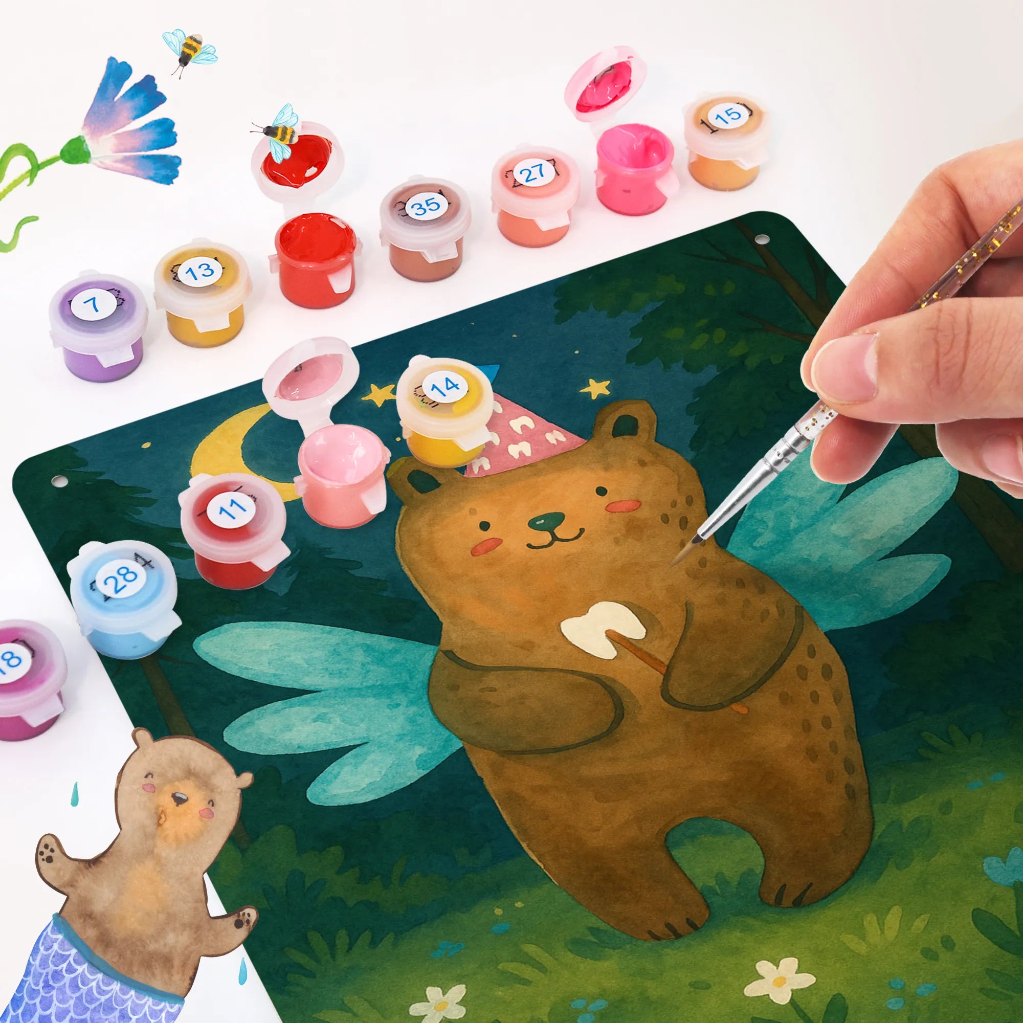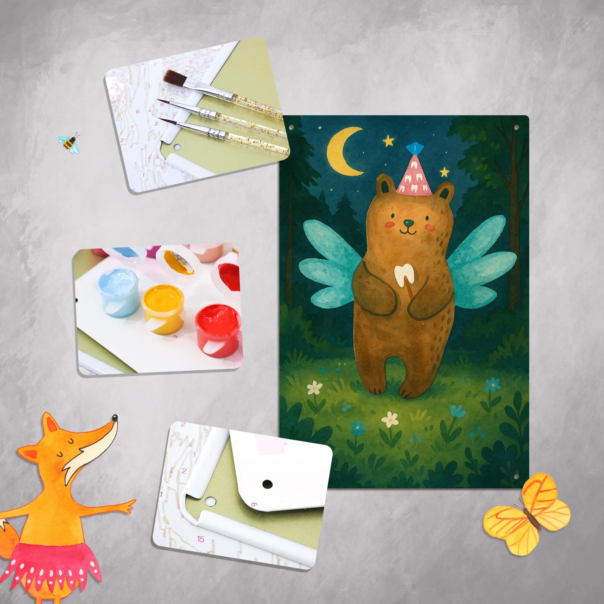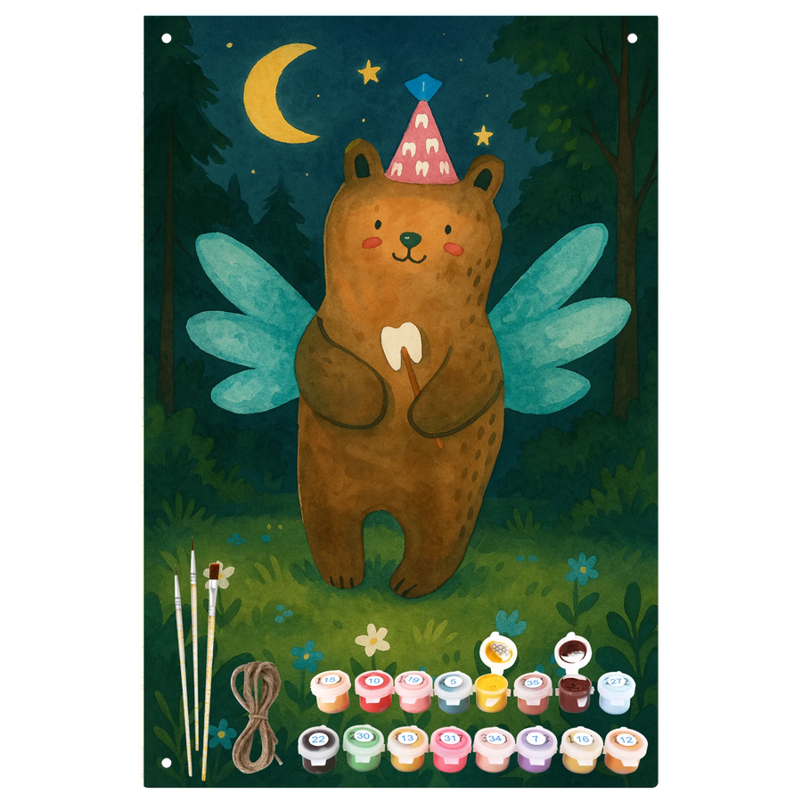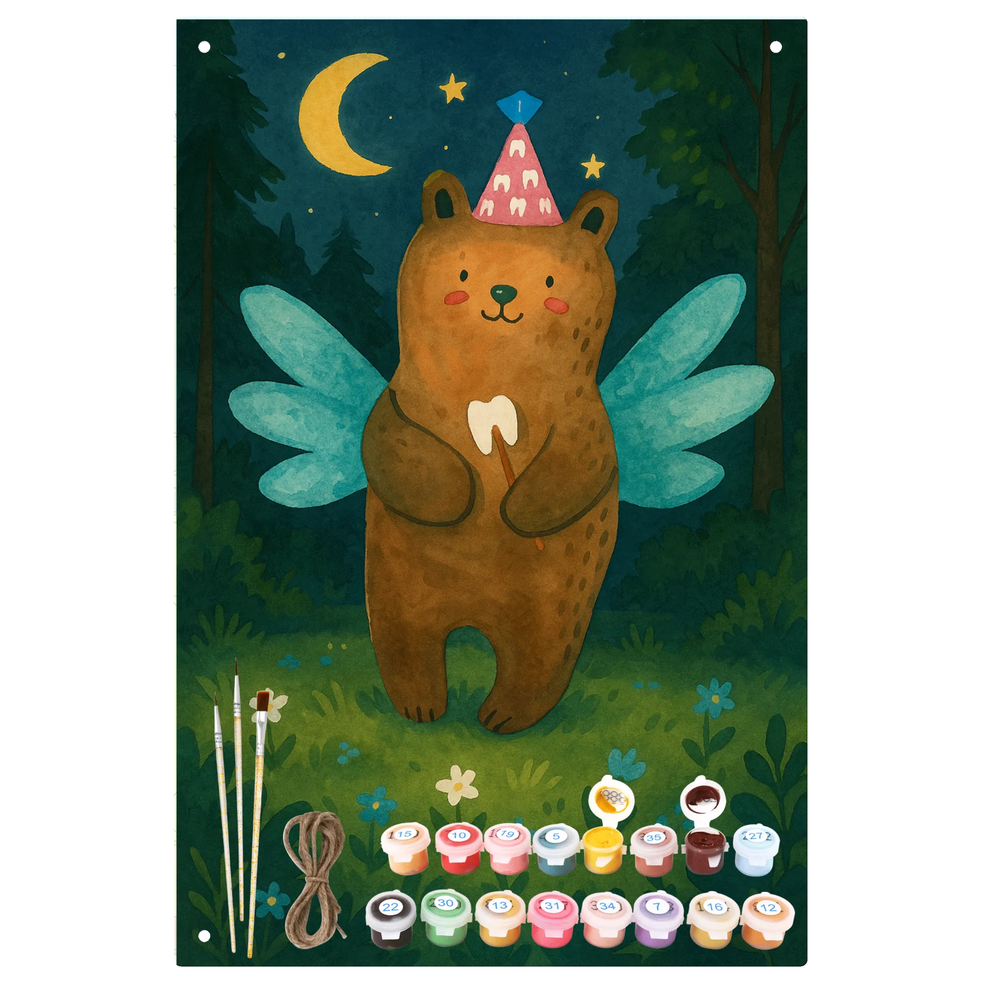 Malen nach Zahlen Metallschild Bär Zahnfee Design
