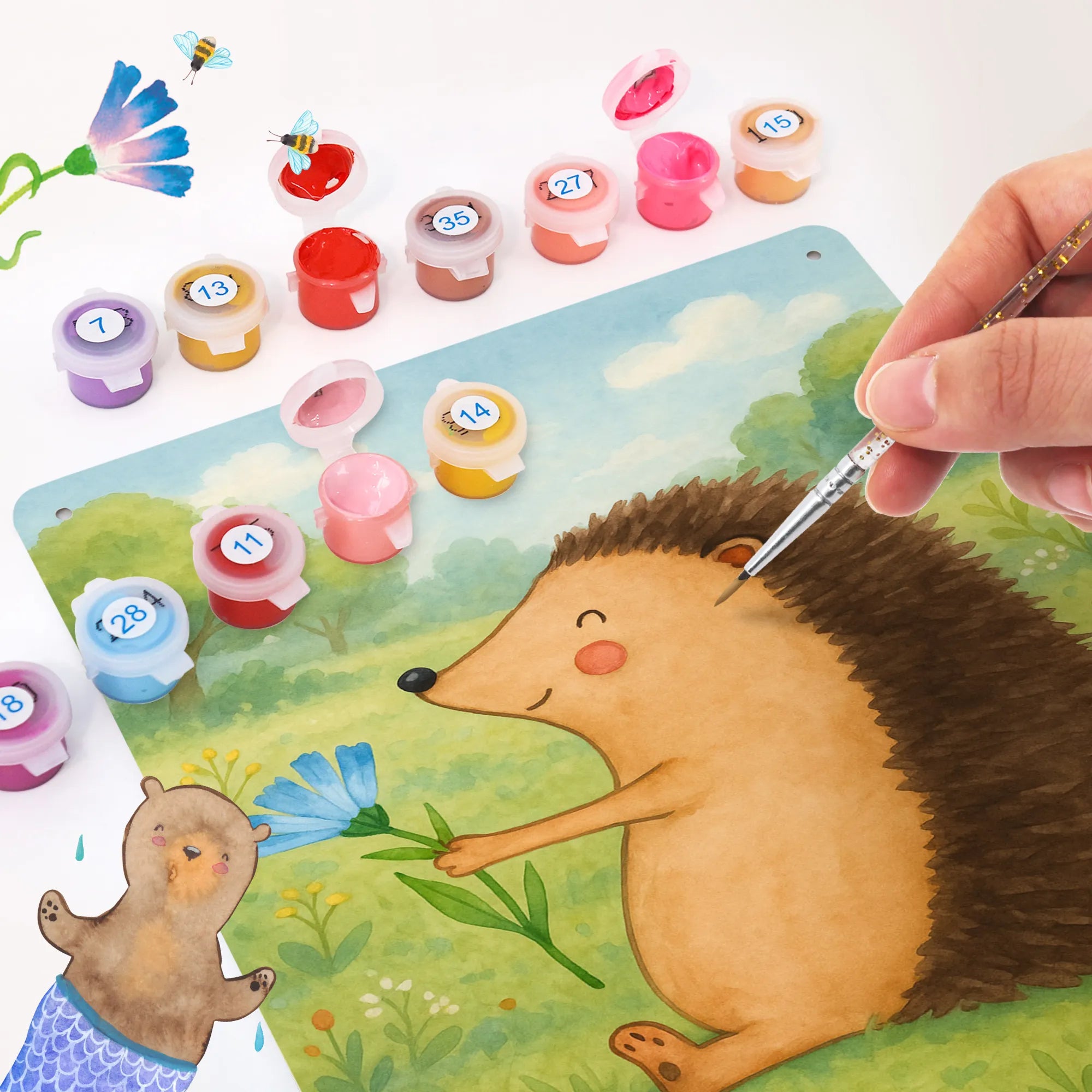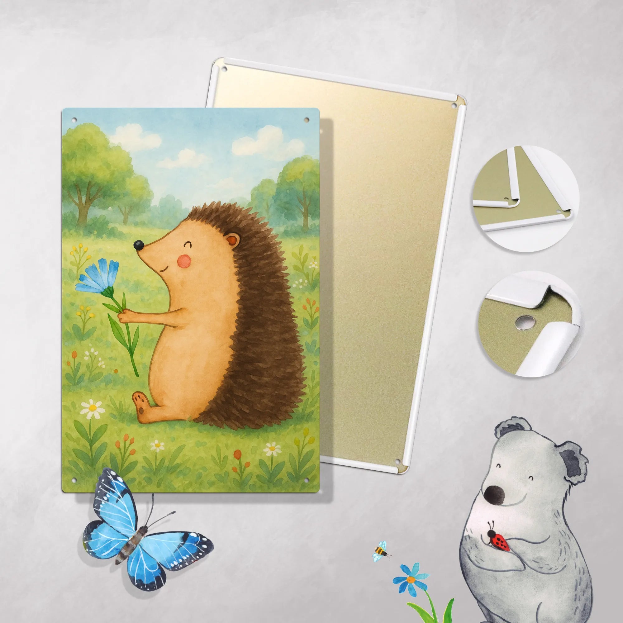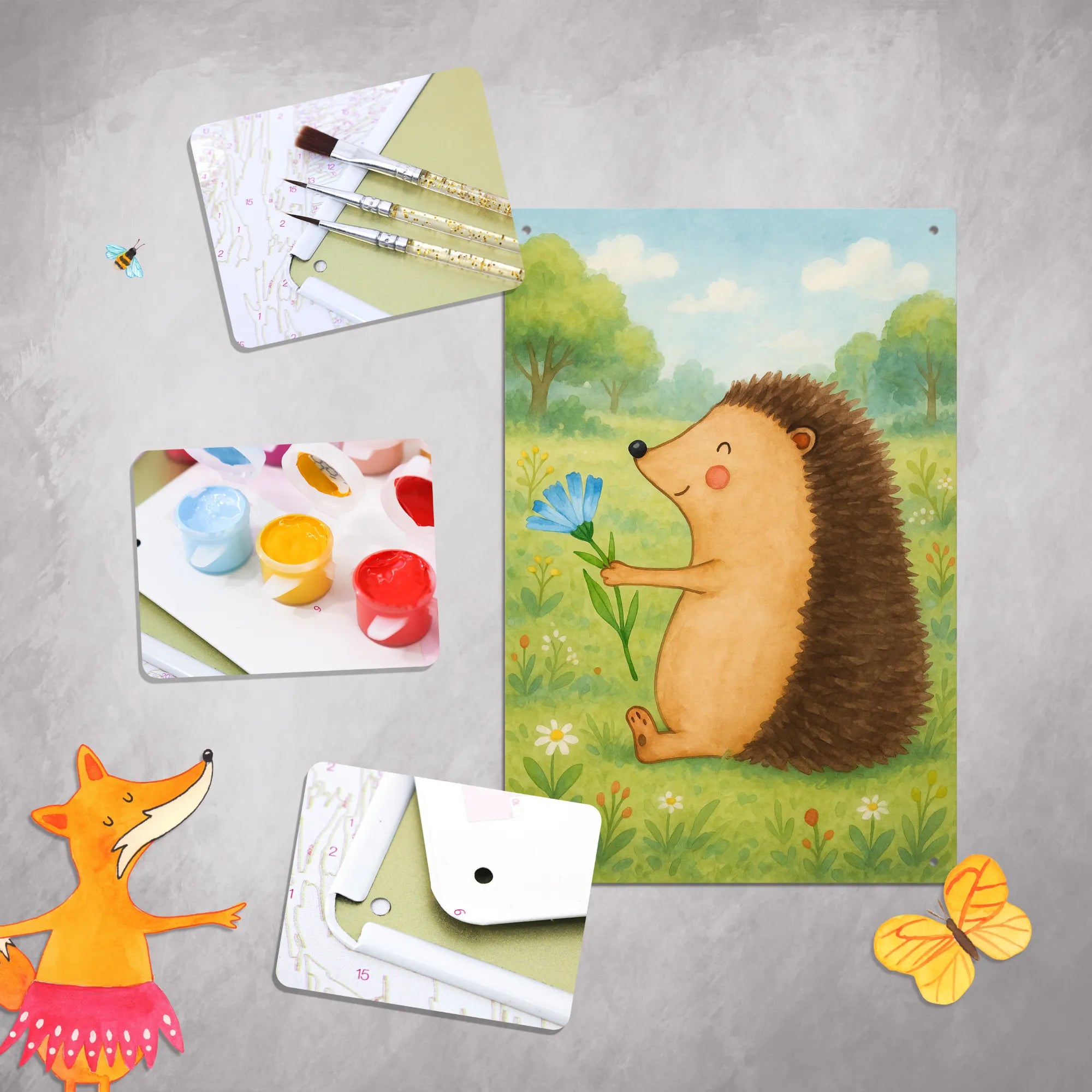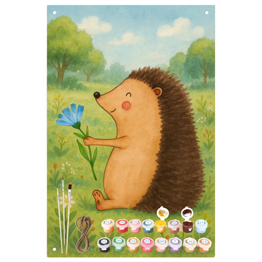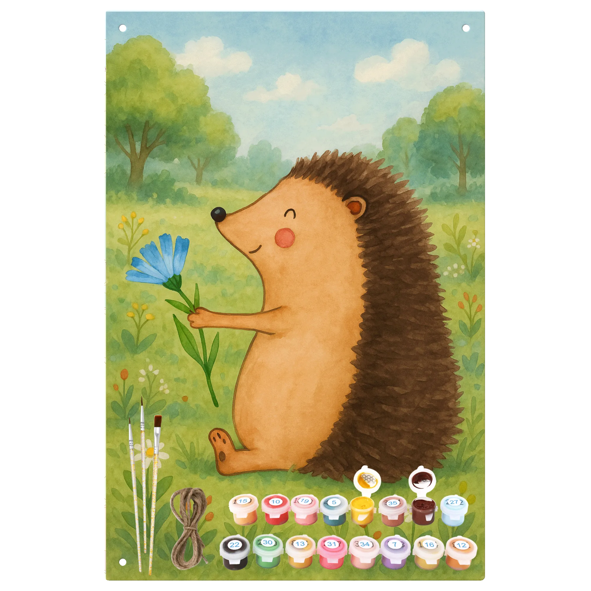 Malen nach Zahlen Metallschild Igel Blumen Design