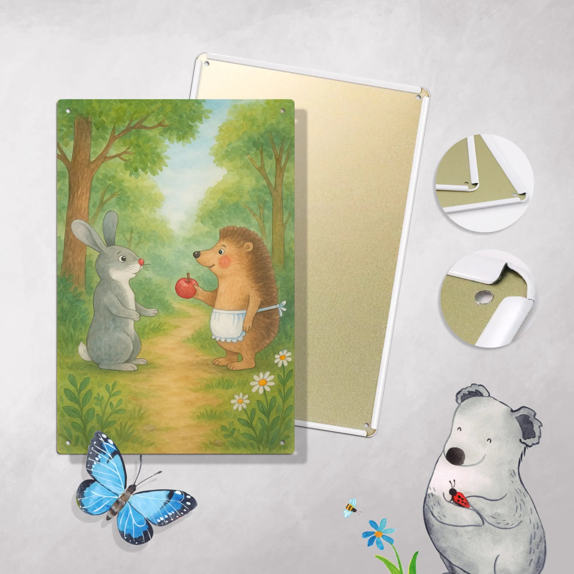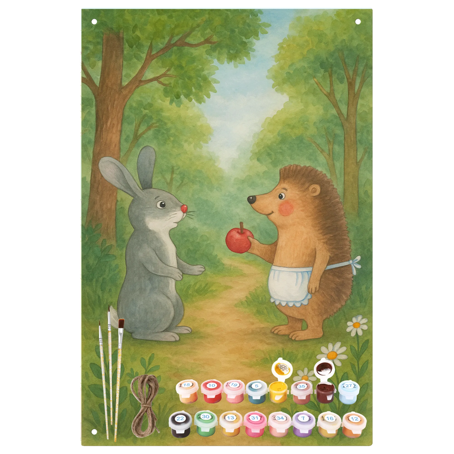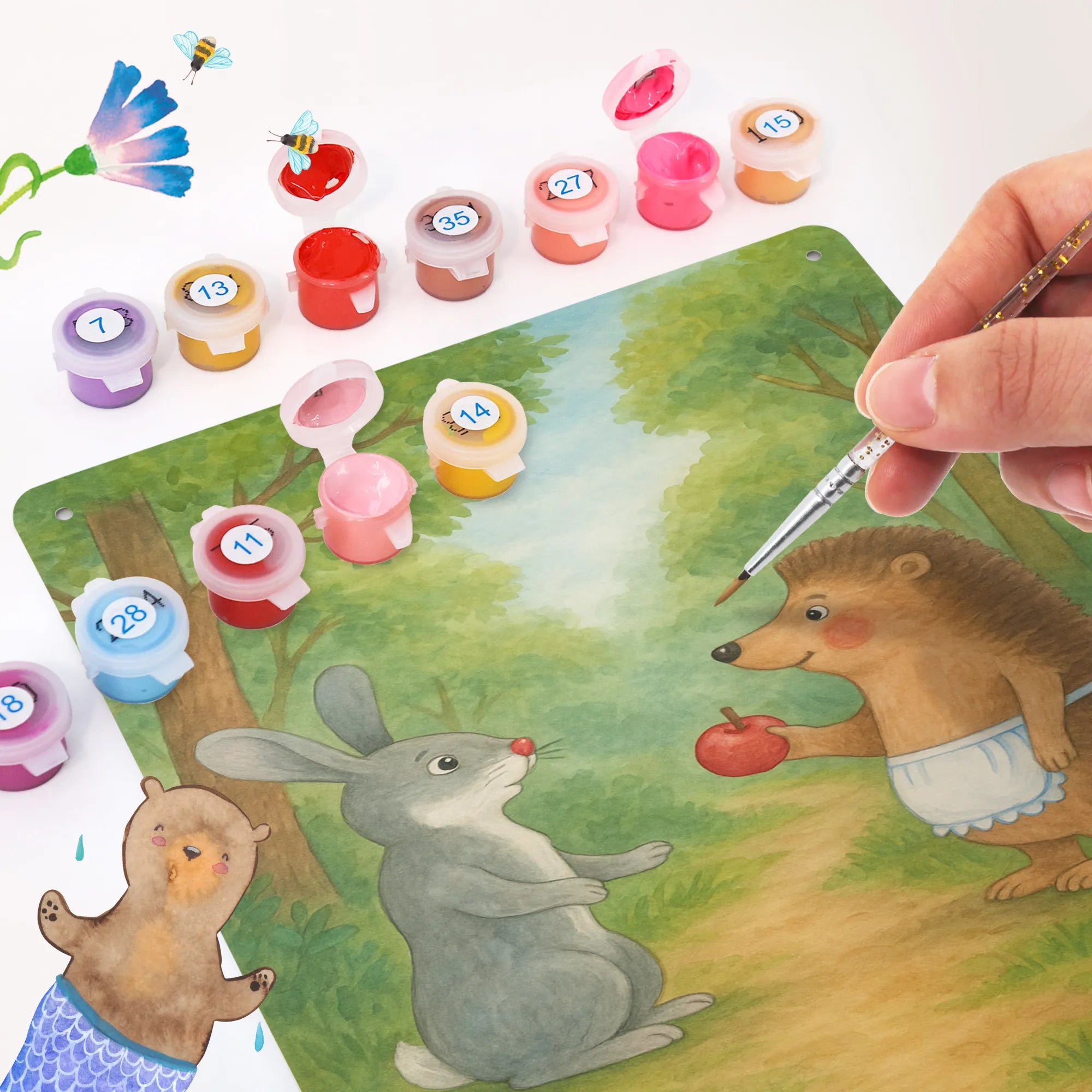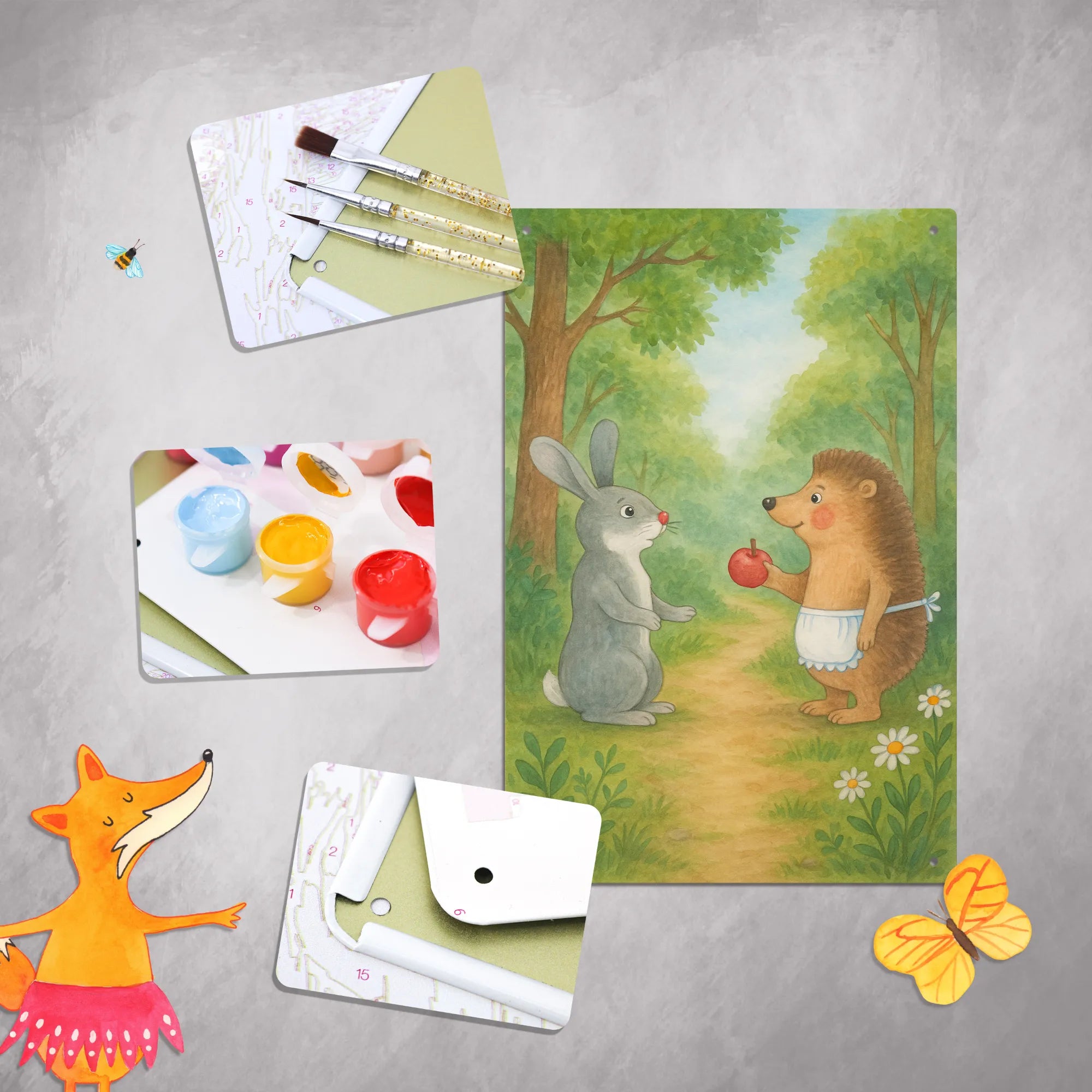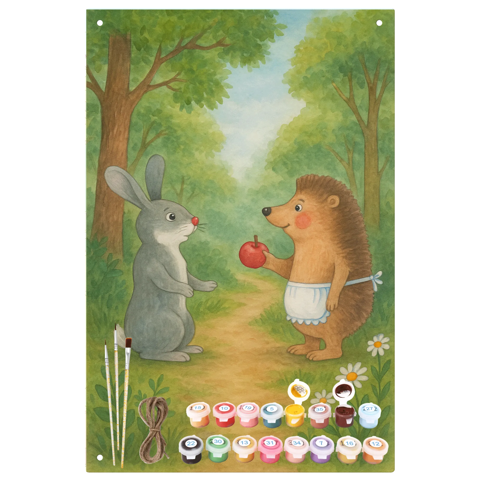 Paint by Numbers Metal Sign Hare Hedgehog Design