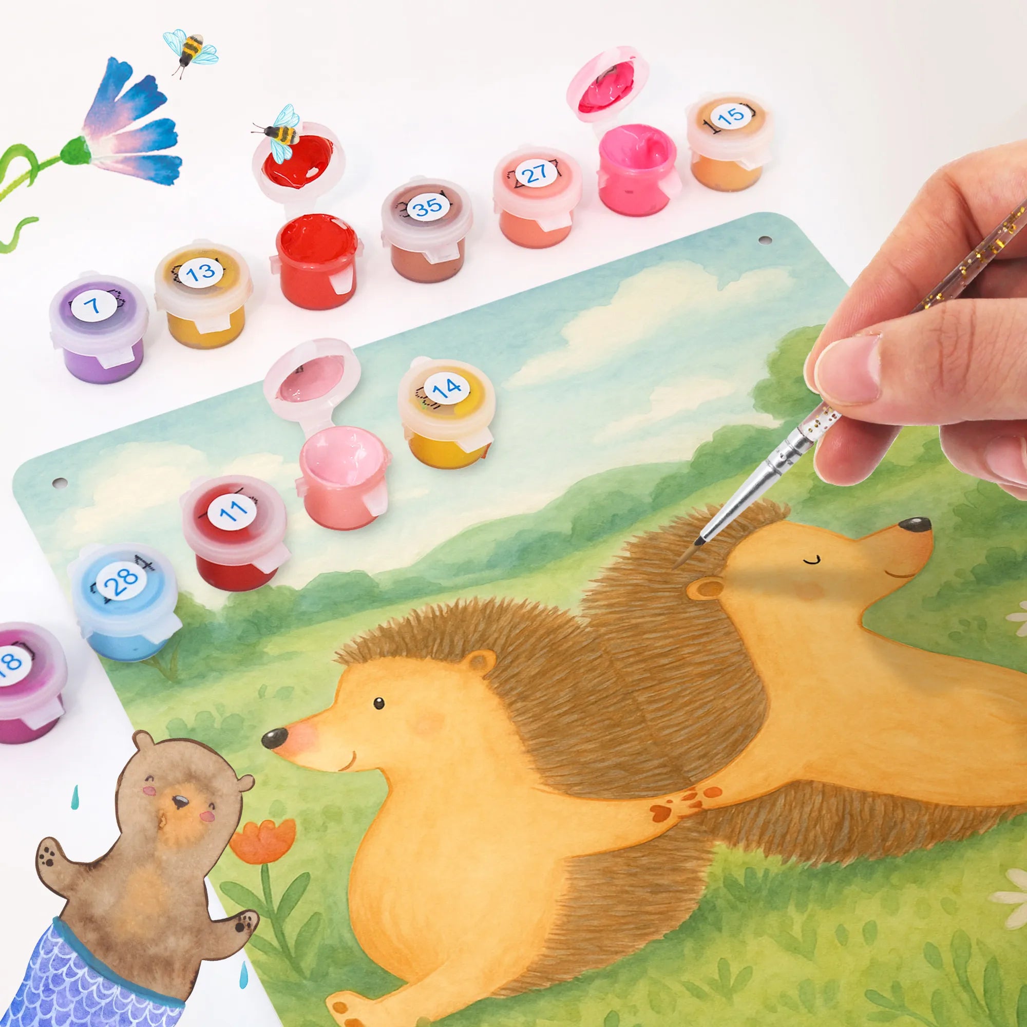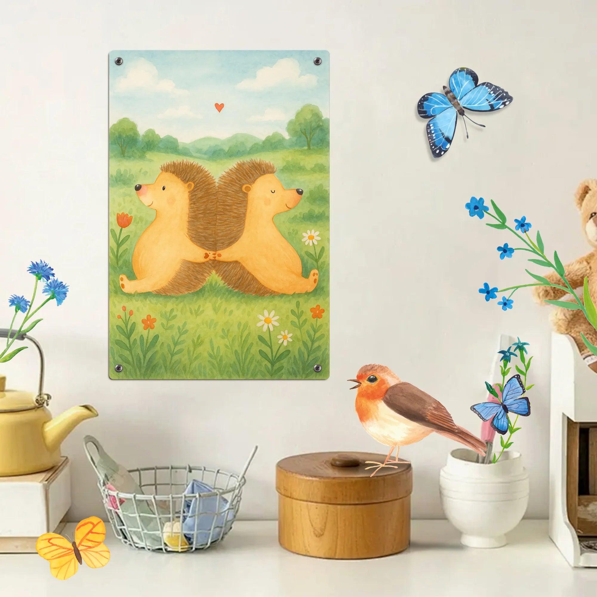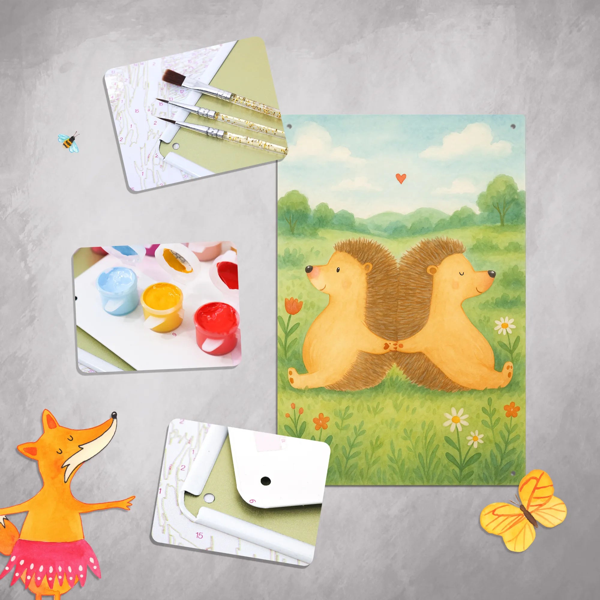 Paint by Numbers Metal Sign Hedgehogs holding hands Design