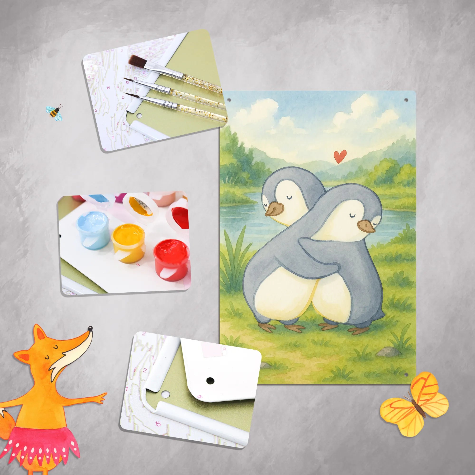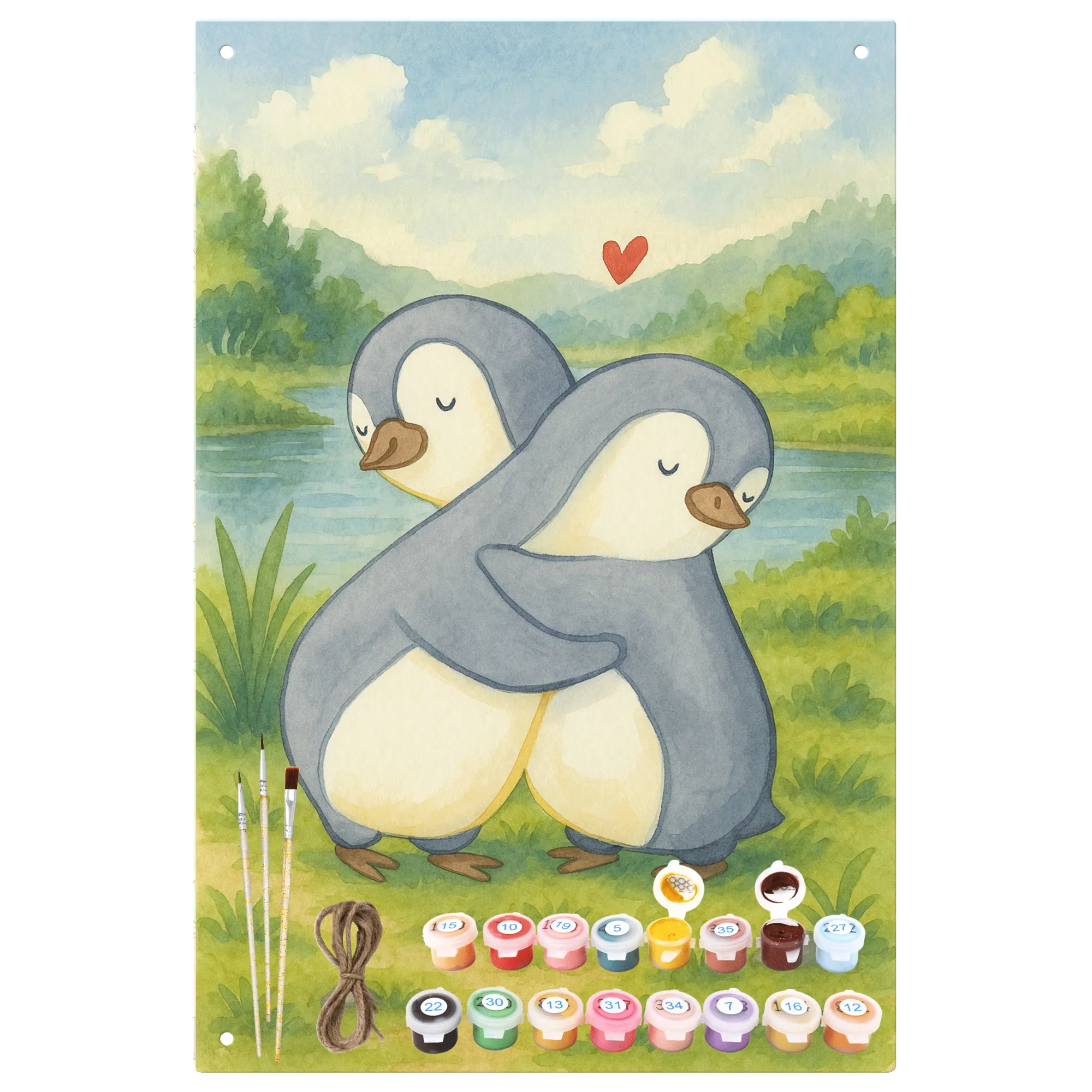 Paint by Numbers Metal Sign penguins Cuddle Design