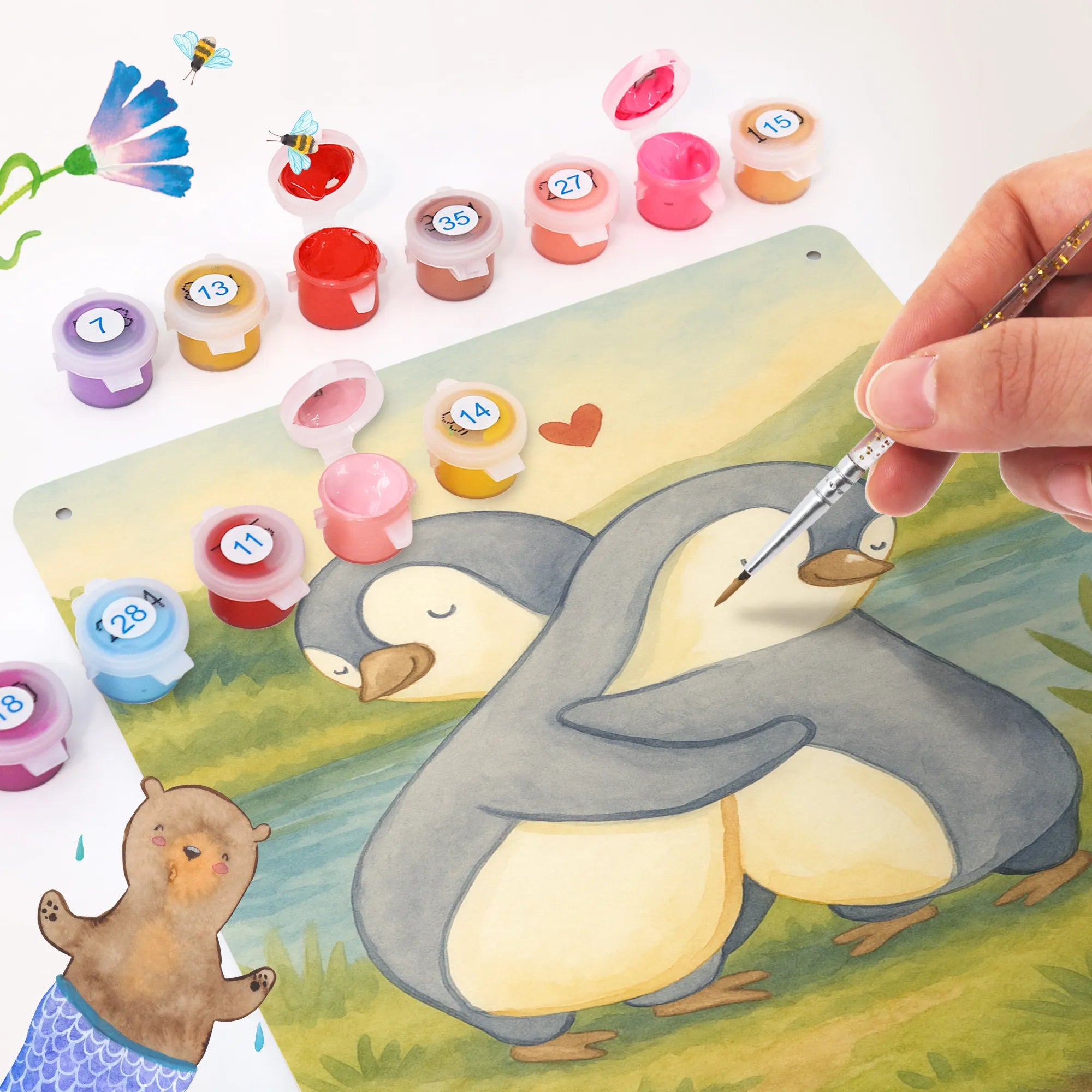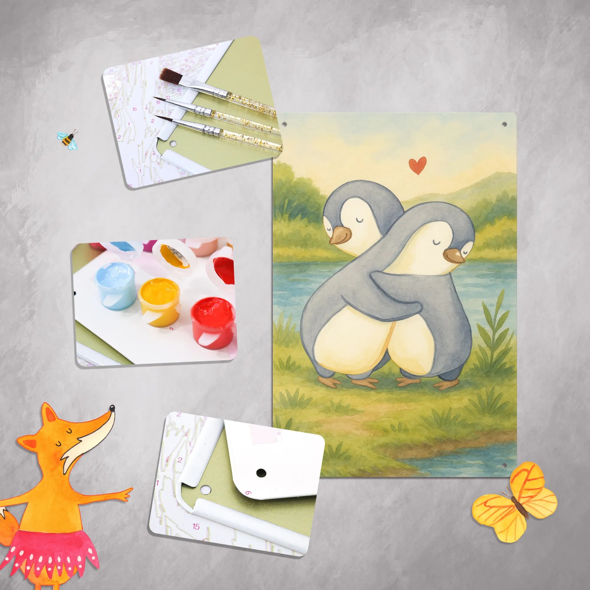 Paint by Numbers Metal Sign penguins Cuddle Design