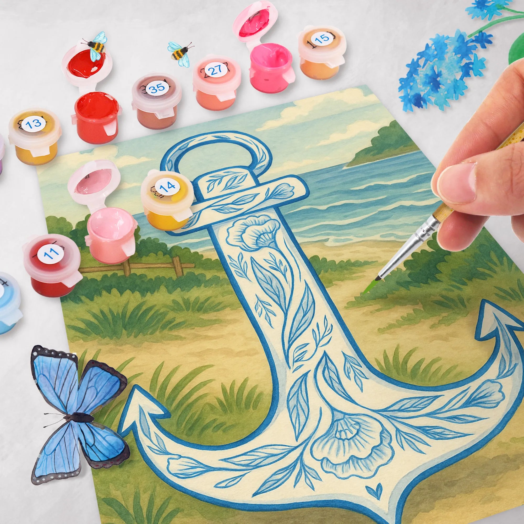 Malen nach Zahlen Anker Blau Design - Ohne Rahmen - 24 Farben (Standard)