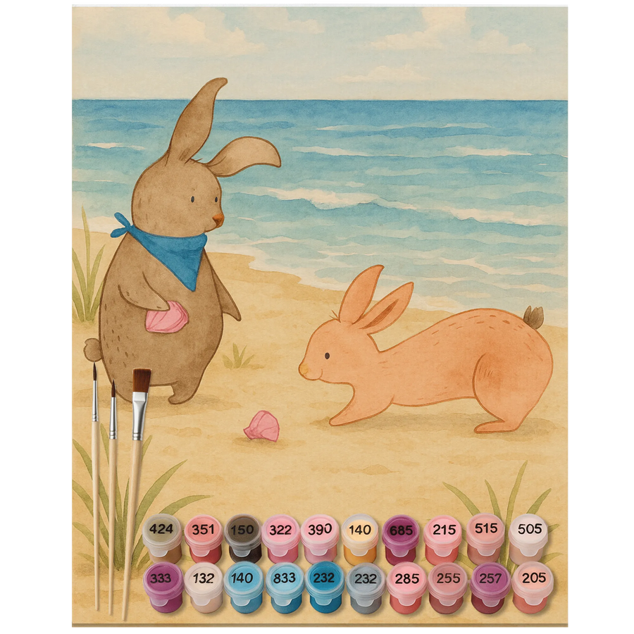 Malen nach Zahlen Hasen Muschel Design - Ohne Rahmen - 24 Farben (Standard)