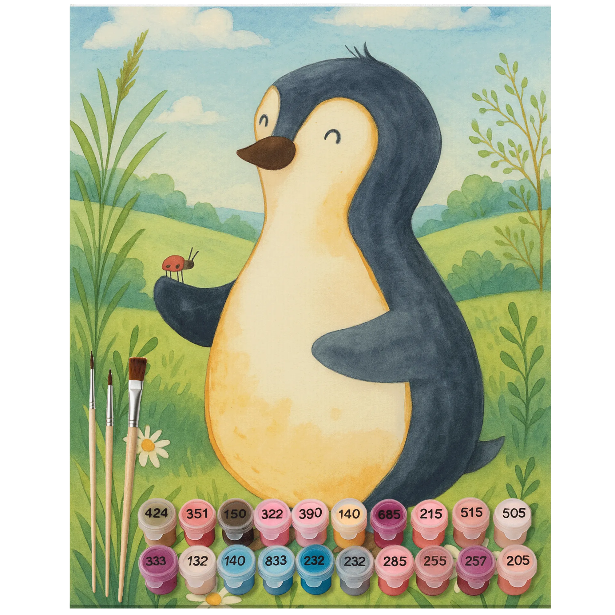 Malen nach Zahlen Pinguin Marienkäfer Design - Ohne Rahmen - 24 Farben (Standard)