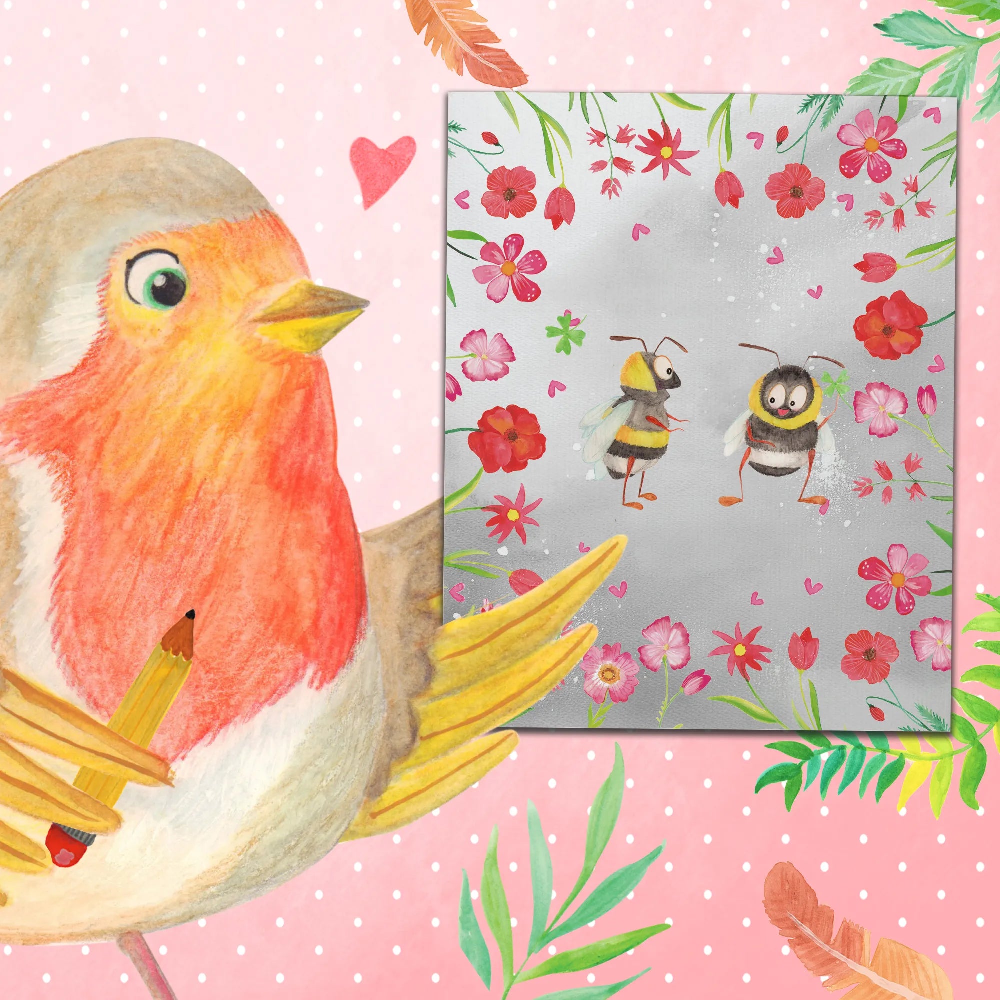 Step into a world of sweetness with these lovely bees! With their bright colors and playful expressions, they tell a story of love and joy. One bee proudly holds a four-leaf clover, a symbol of luck and companionship. This motif is a wonderful choice for a Valentine's Day gift for women or to express admiration for your partner. Designed with warmth in mind, these cheerful bees embody connection, making them perfect for anniversaries, weddings, or simply as a delightful gift for your husband or boyfriend. They remind us that love can be found in the simplest of things, much like how turtles show their affection. Perfect for those who appreciate art that brings positivity into their lives.
