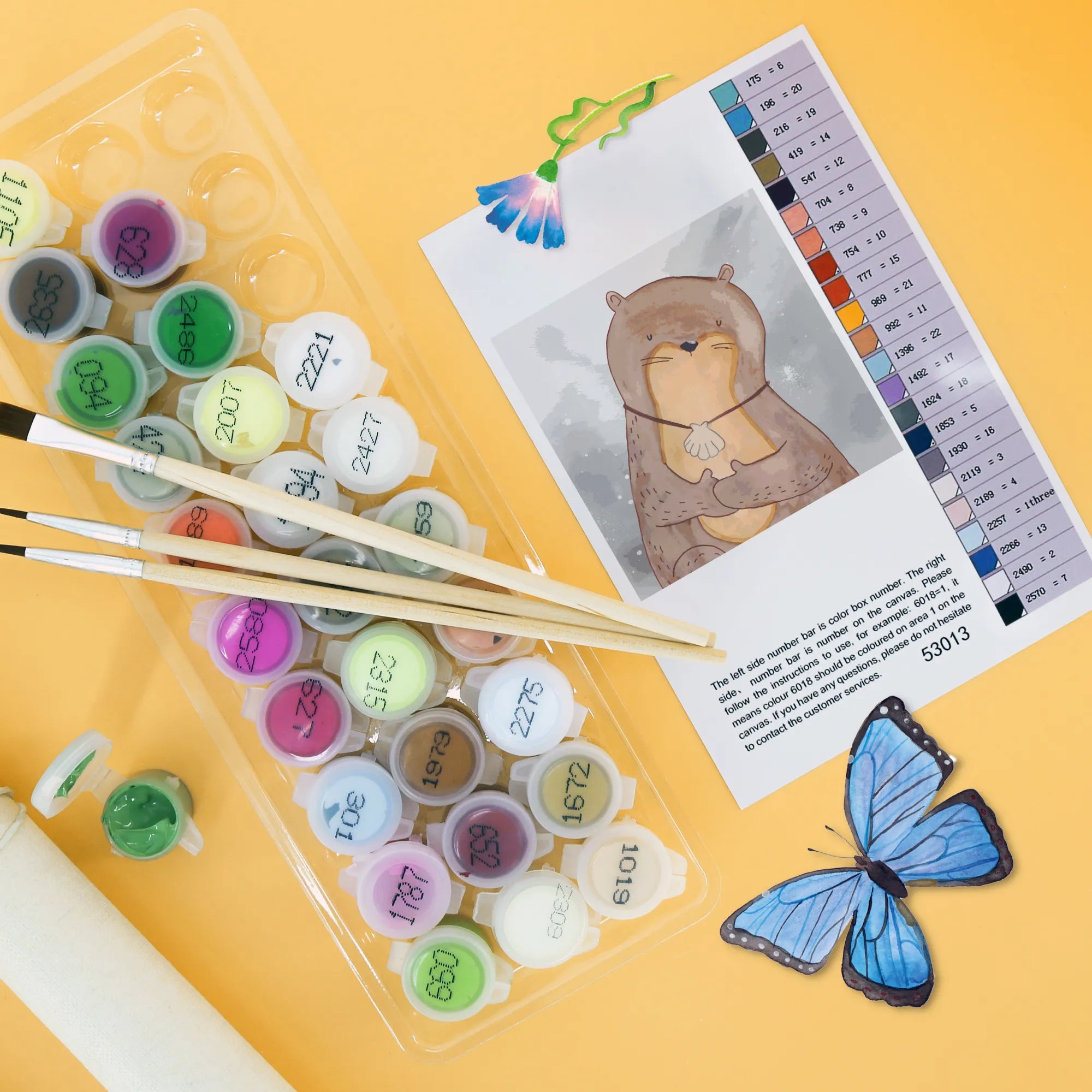 In conclusion, whether you're looking for a painting project to soothe your mind, a unique gift for your favorite animal lover, or simply a way to explore your creativity, the Paint by Numbers otter set is the ideal choice. Dive into the wonderful world of DIY painting today, and let this heartwarming otter remind you to embrace love, live freely, and worry less!