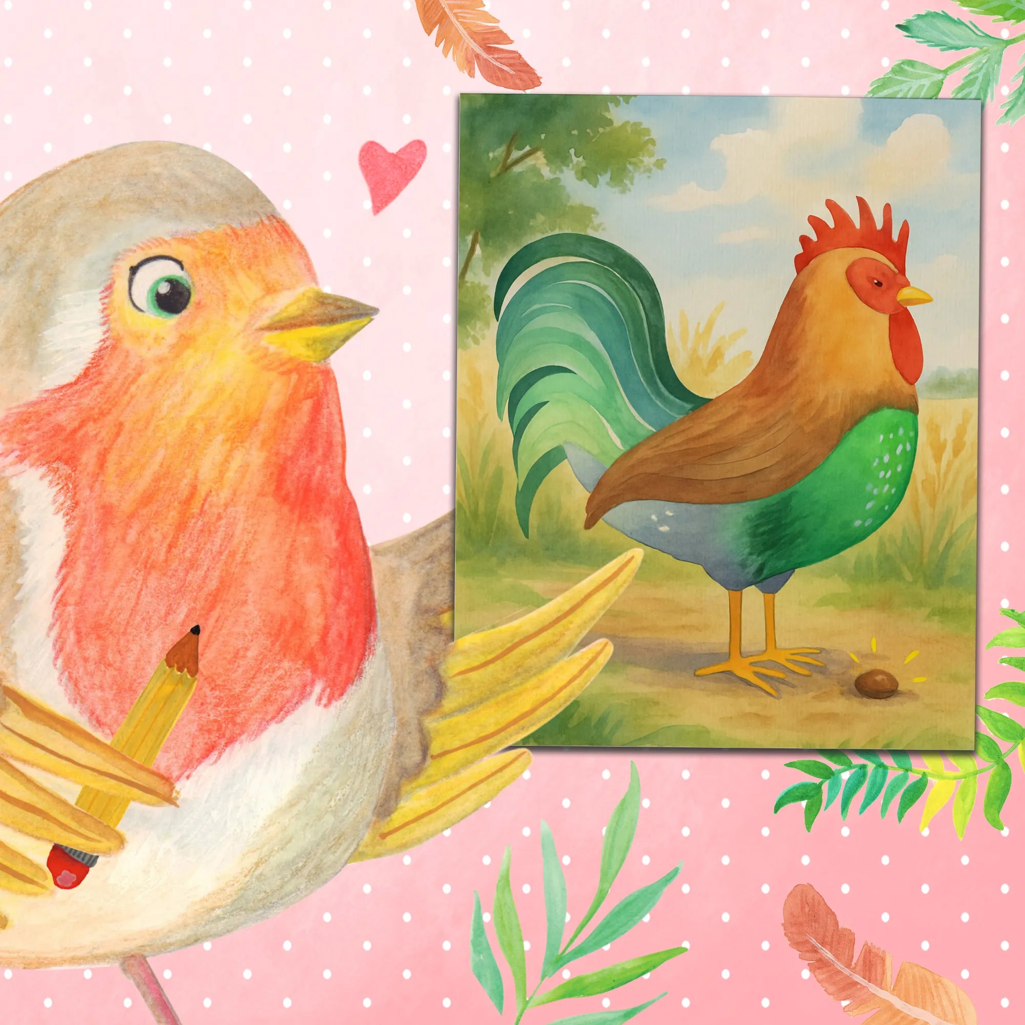 Welcome to the heart of the farm, where a spirited cock proudly discovers a golden grain. With every step, he radiates confidence, strutting among the vibrant greens and the bustling hens who cheer him on. His daily routine is more than farming; it's a jubilant festival of life that invites all to appreciate nature’s wonders. The joy of finding a tasty treat is like uncovering treasures in a playful game with friends. Just imagine the clucking and cooing, reflecting the energetic dance of rural life. This motif transcends mere imagery; it's an ode to the beauty of little moments that fill our lives with happiness, friendship, and the promise of delightful eggs. So, pull up a chair, take a deep breath of fresh air, and let the charm of this delightful cock bring a smile to your day.