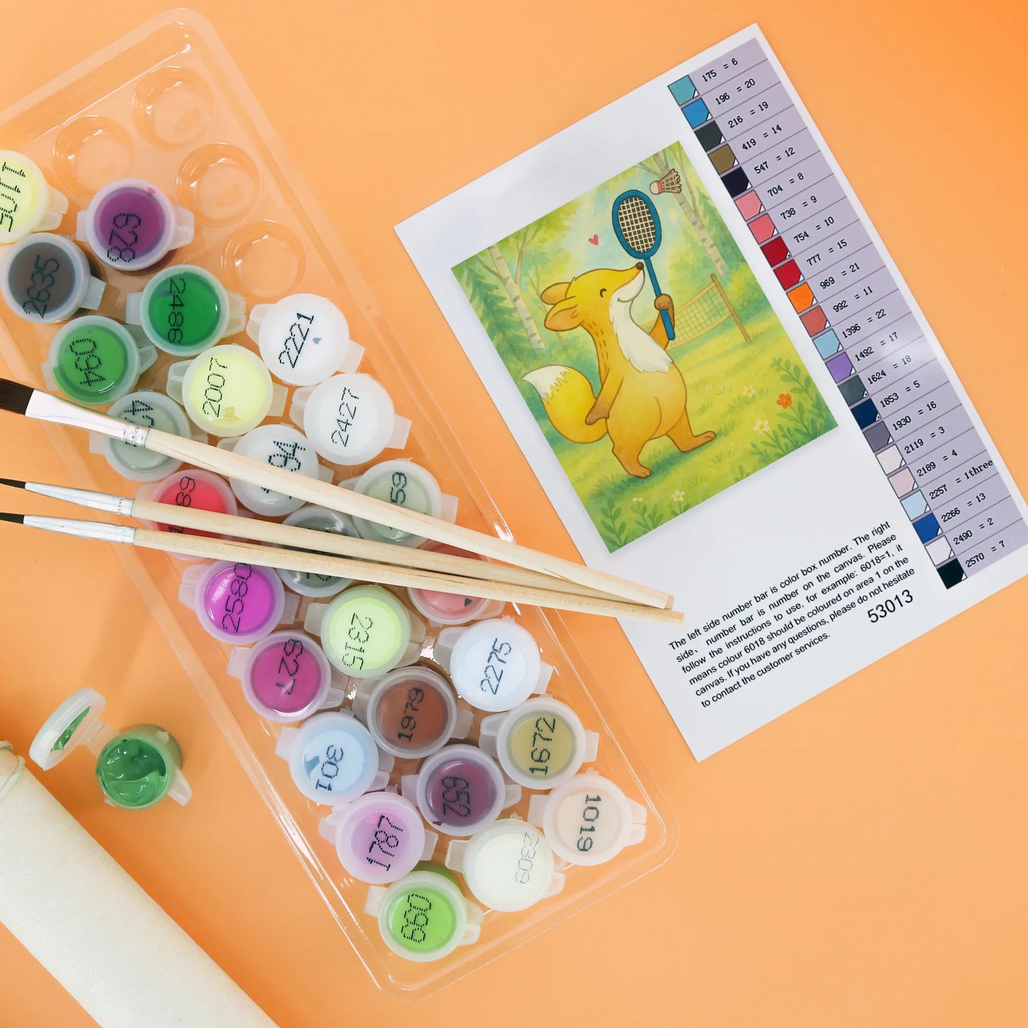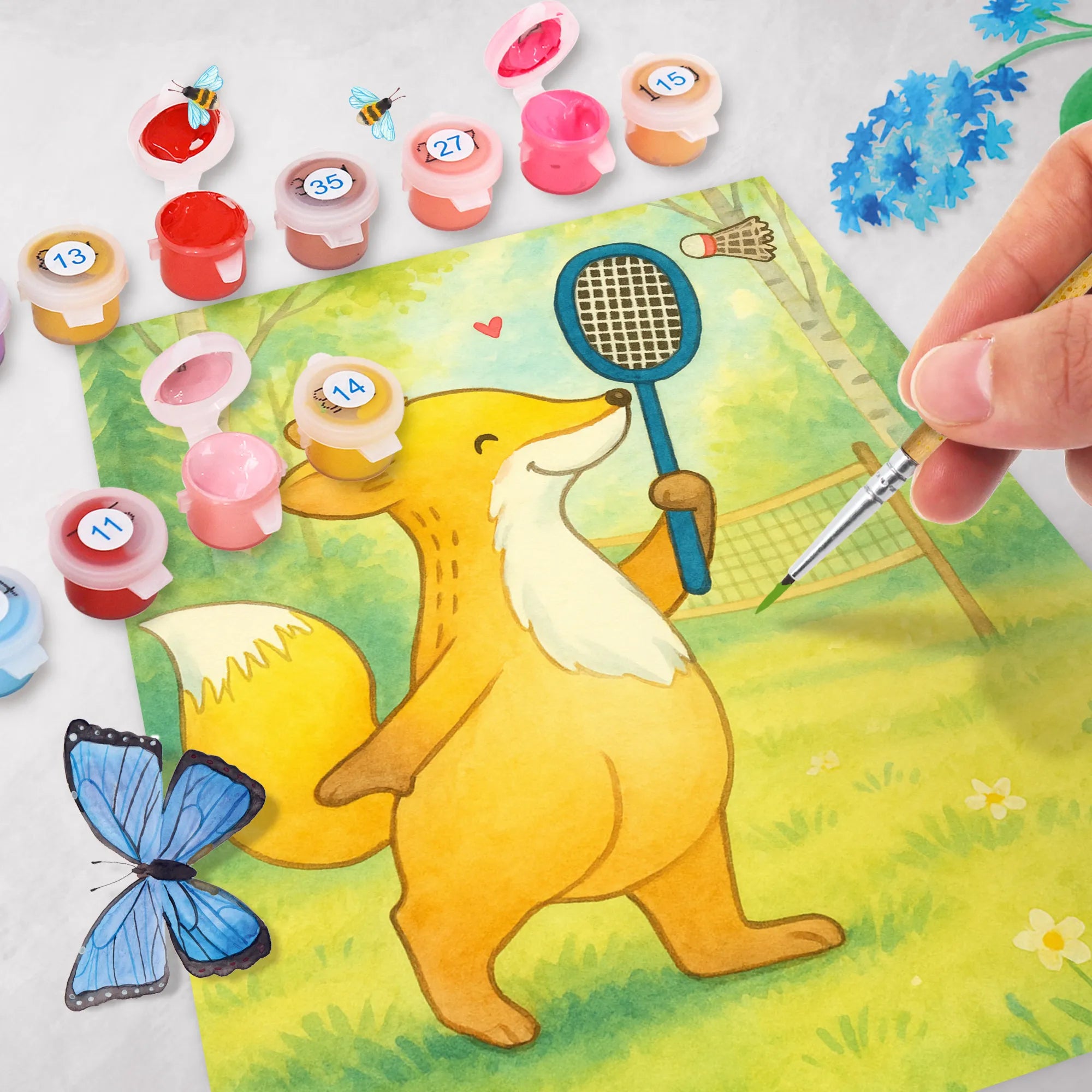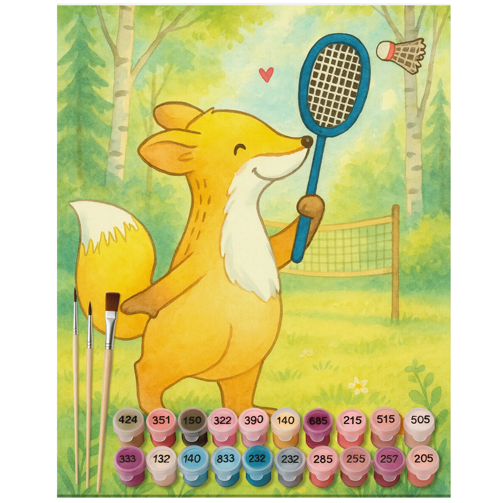 Paint by Numbers Fox play badminton Design - Ohne Rahmen - 24 Farben (Standard)