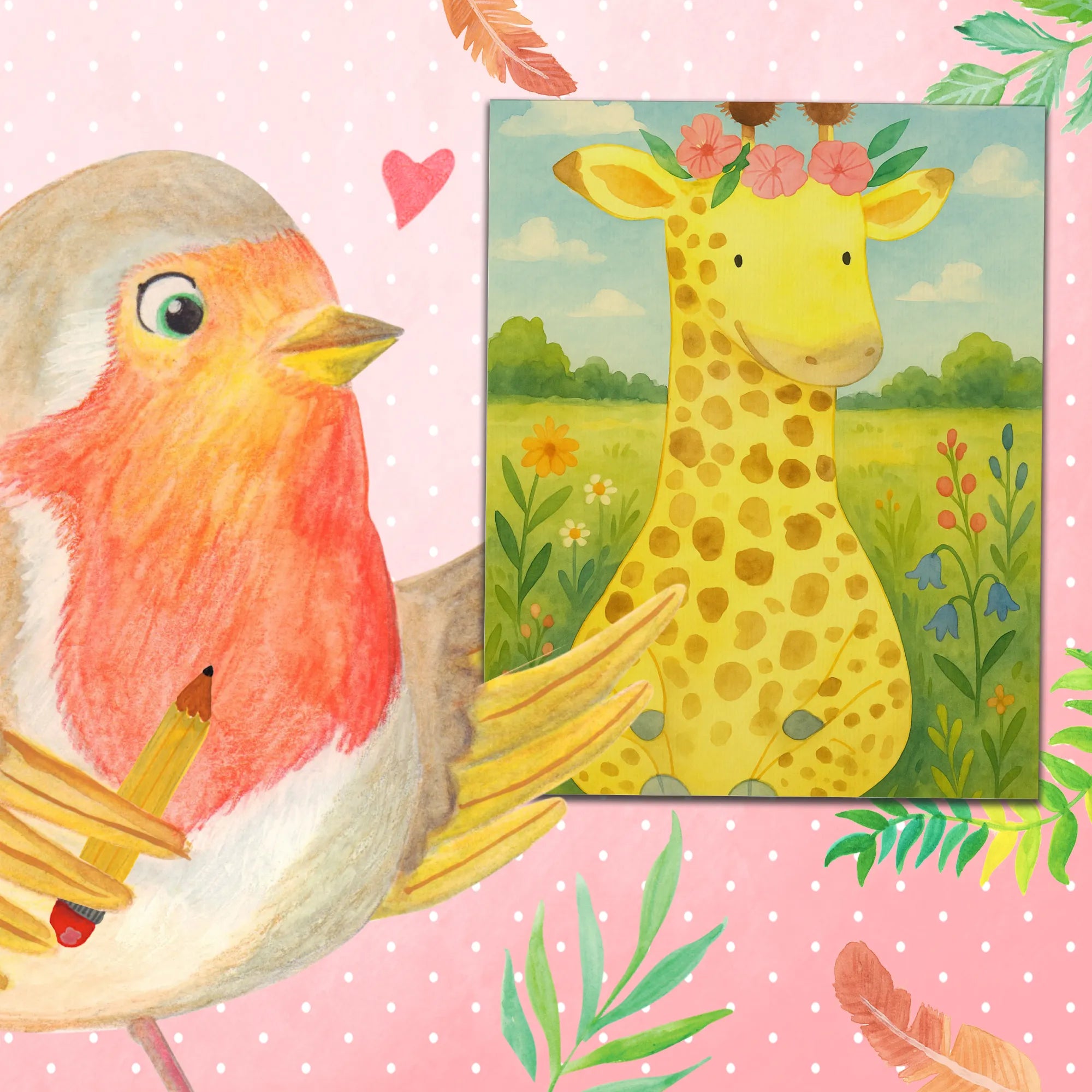 Introducing an enchanting giraffe adorned with a wonderful wreath of flowers. This cheerful adventurer is here to remind us all about the importance of self-love and nurturing friendships. The vibrant hues of her floral crown symbolize joy and the spontaneity of life’s journeys. With every glance at her beautiful face, you'll feel inspired to embrace who you are and the beautiful bonds you cultivate. She’s not only a symbol of adventure but also a gentle nudge to celebrate every day. Let her whimsical nature fill your life with positivity and warmth, encouraging you to treasure the small moments that bring happiness. This giraffe reminds us that the greatest adventure we can embark on is the journey to love ourselves.