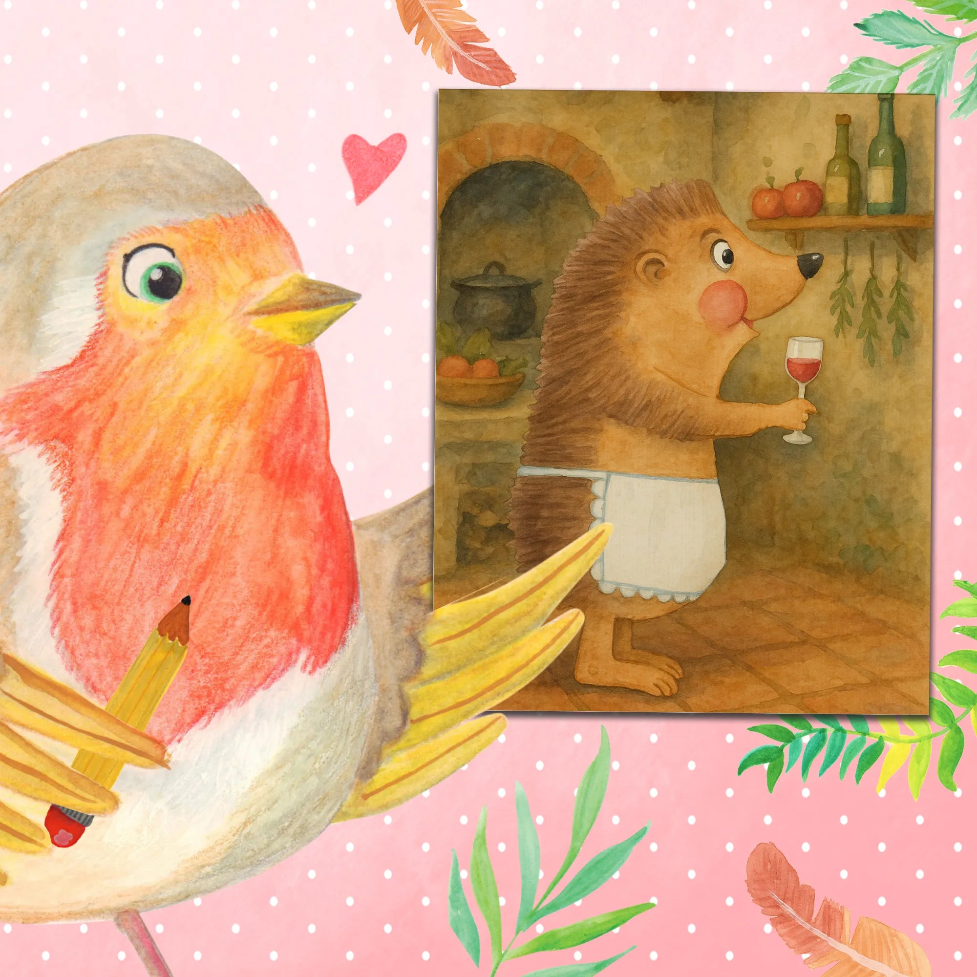 Charming Hedgehog with Wine - Perfect Gift for Wine Lovers!