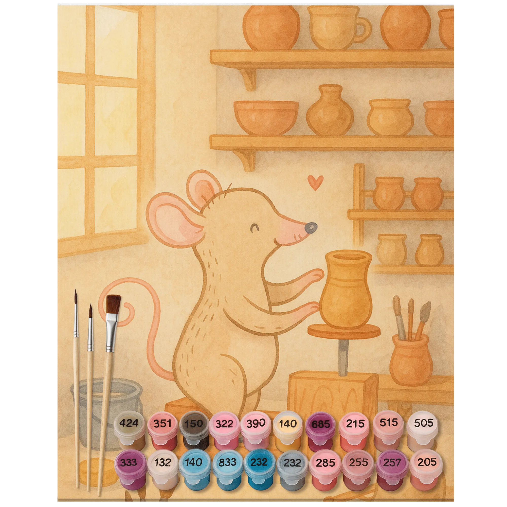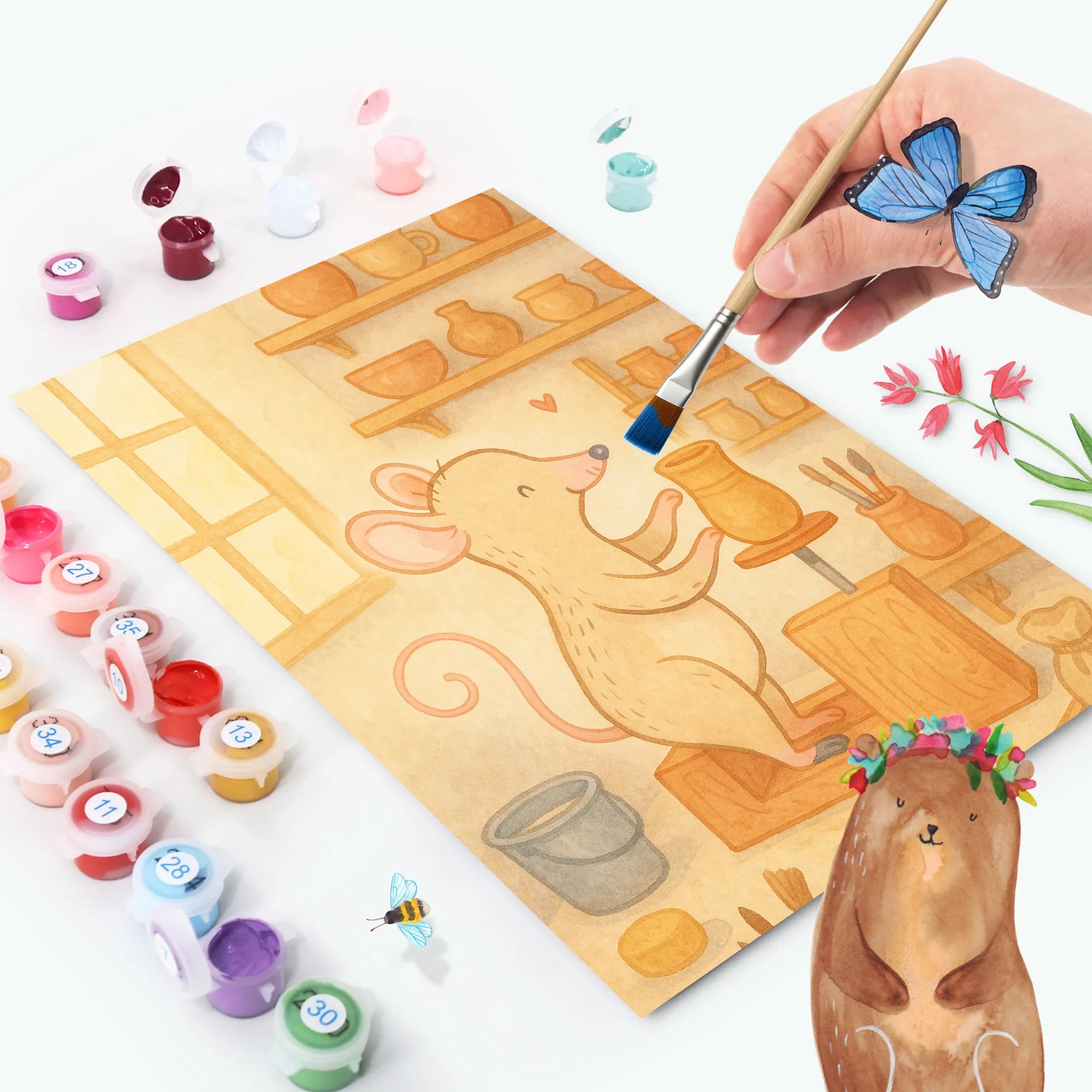 Paint by Numbers Mouse pottery Design - Ohne Rahmen - 24 Farben (Standard)