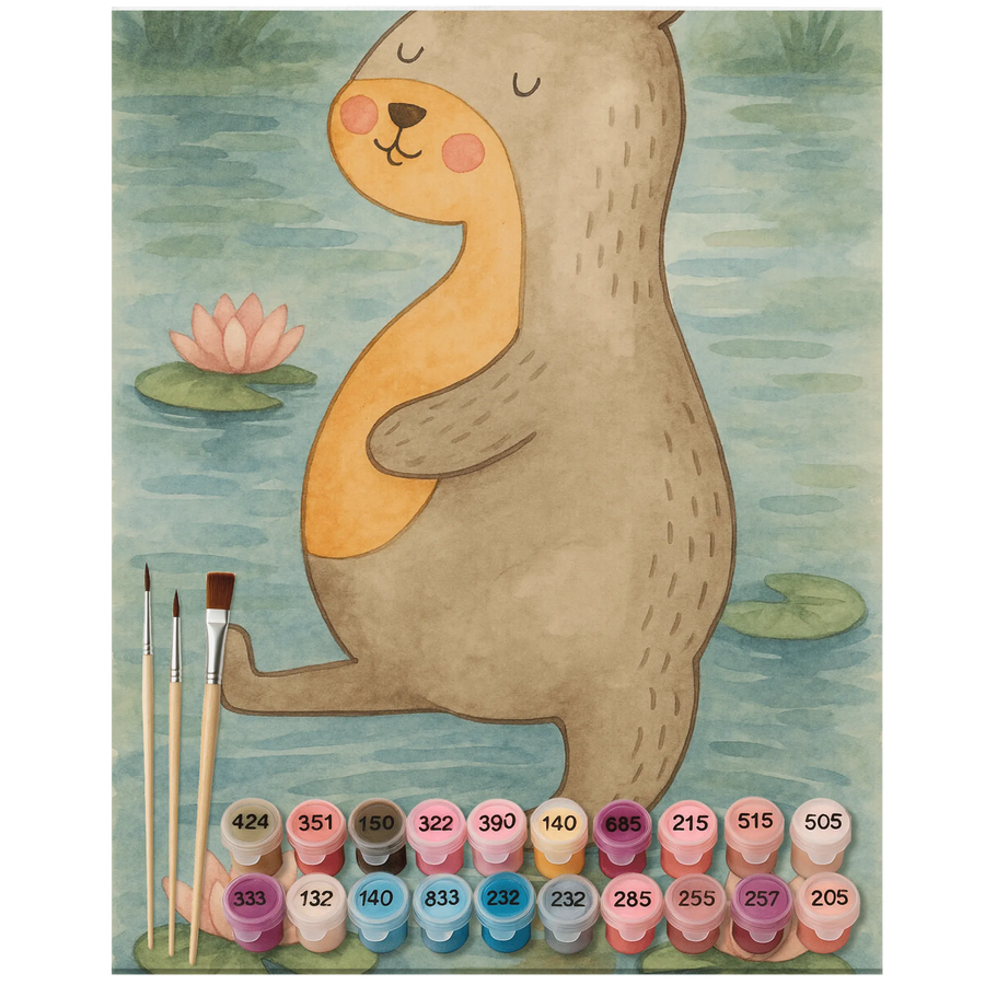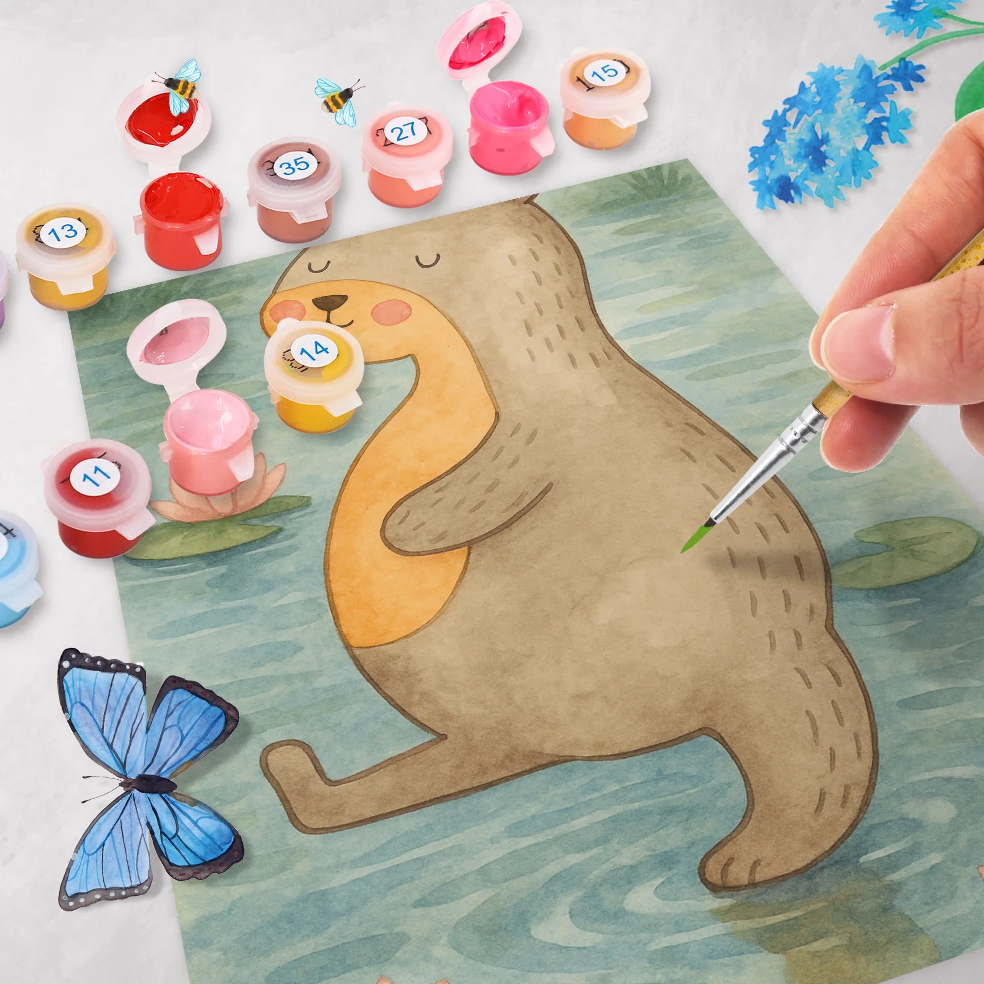 Das macht das Set besonders: Es ist komplett vorbereitet, damit du sofort loslegen kannst. Das niedliche Otter Motiv passt besonders gut zu Themen wie Seeotter, Fischotter, Otter Malset und Ausmalbild. Verschenke Entspannung, Kreativität und ein kleines Stück Glück – mit unserem Malen nach Zahlen Otter Bauch.