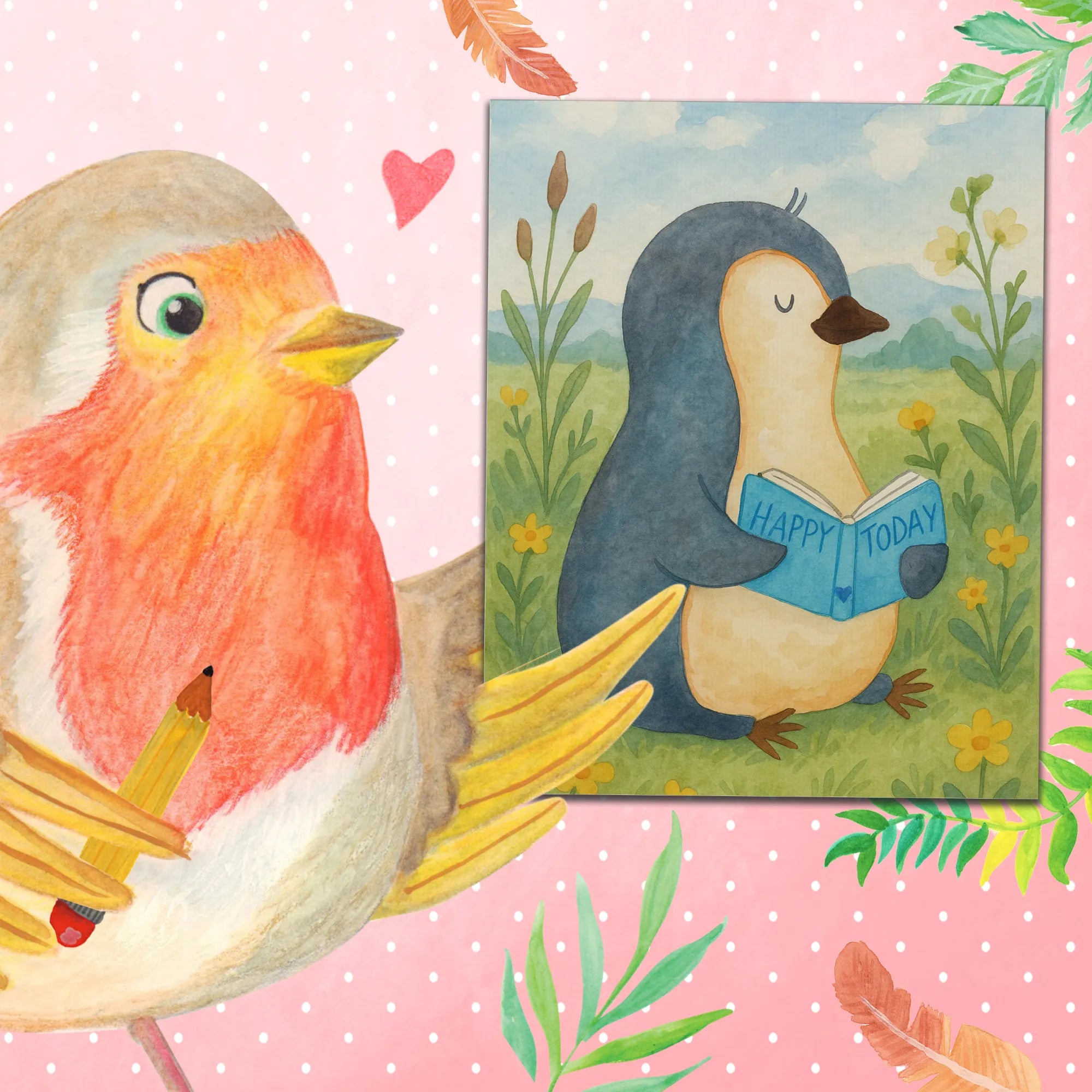 Pinguin mit Buch: Charmantes Motiv für entspannte Lesestunden