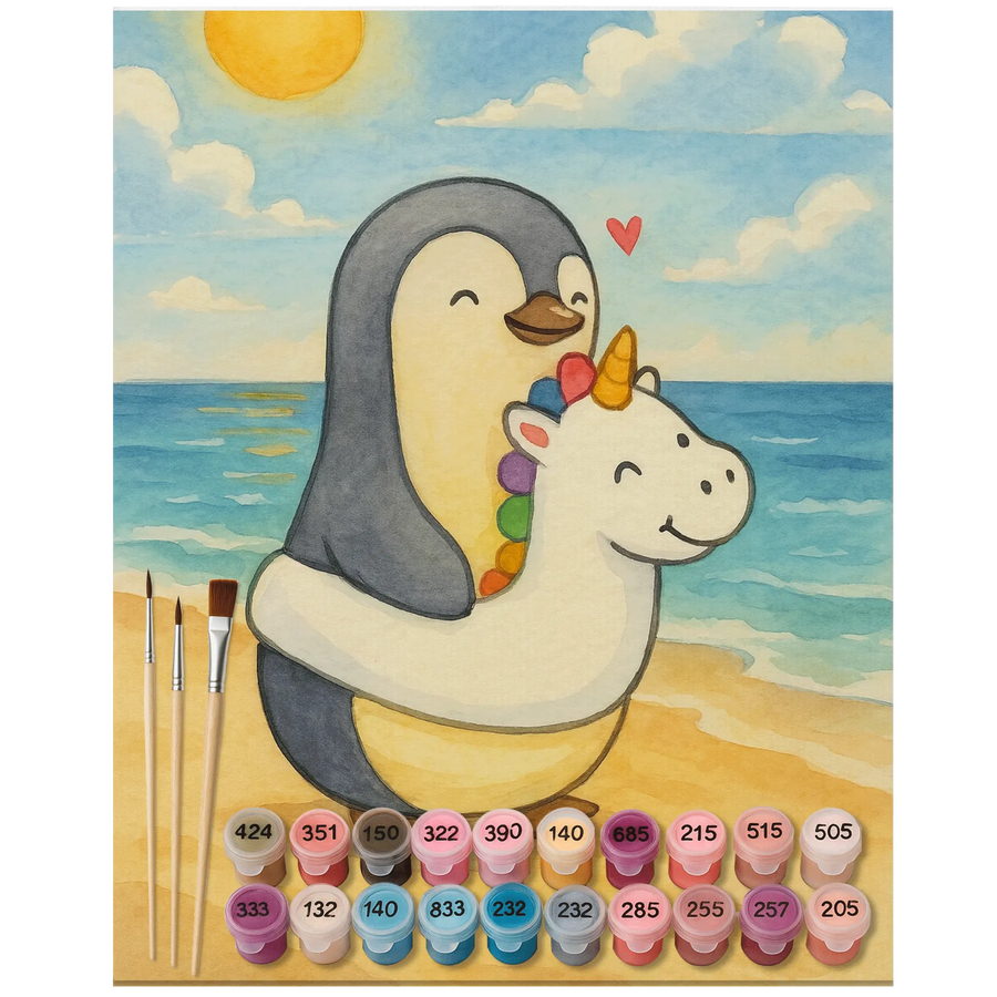 Paint by Numbers Penguin swim ring Design - Ohne Rahmen - 24 Farben (Standard)